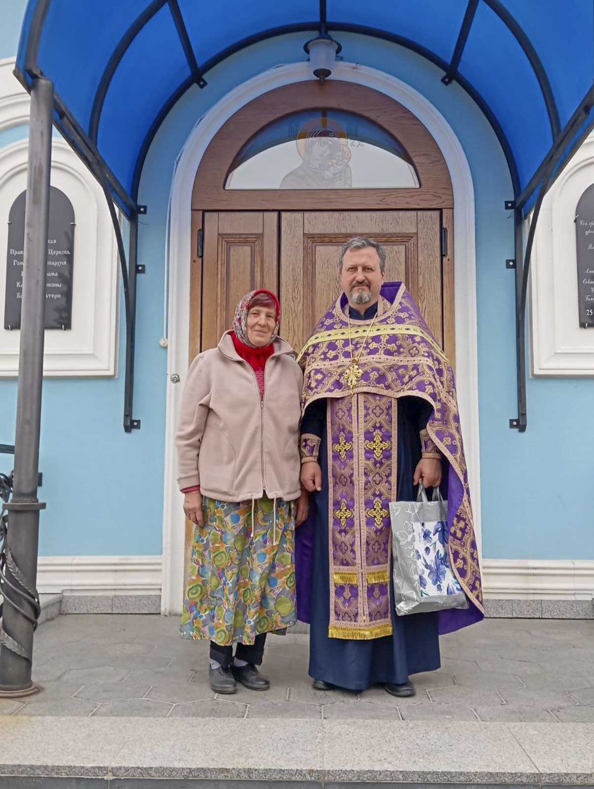 Настоятель храма Покрова Пресвятой Богородицы в аг. Довск протоиерей Виталий Левчук также посетил прихожанок преклонного возраста, поблагодарил их за многолетний труд во славу Божию, вручил подарки и пожелал душевного мира.