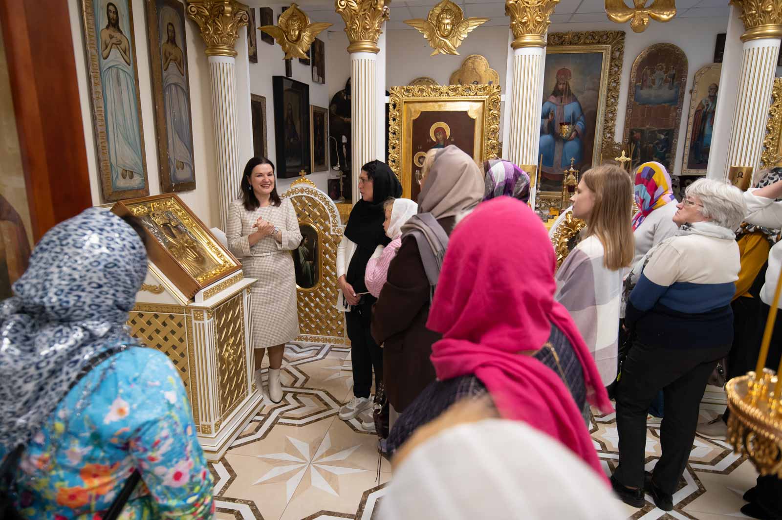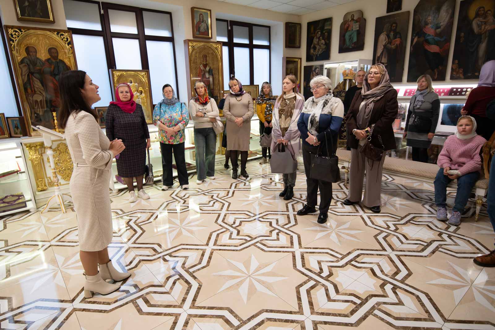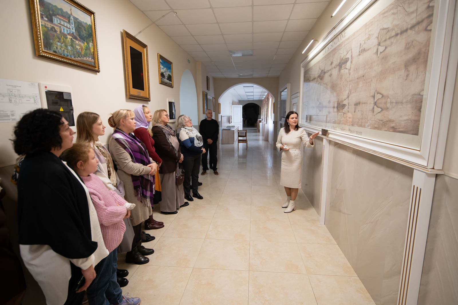 Для представителей учреждений культуры г. Гомеля была проведена экскурсия по домовому храму-музею в честь Собора всех Белорусских Святых при Гомельском епархиальном управлении, в рамках которой гости познакомились с работой реставрационной мастерской.