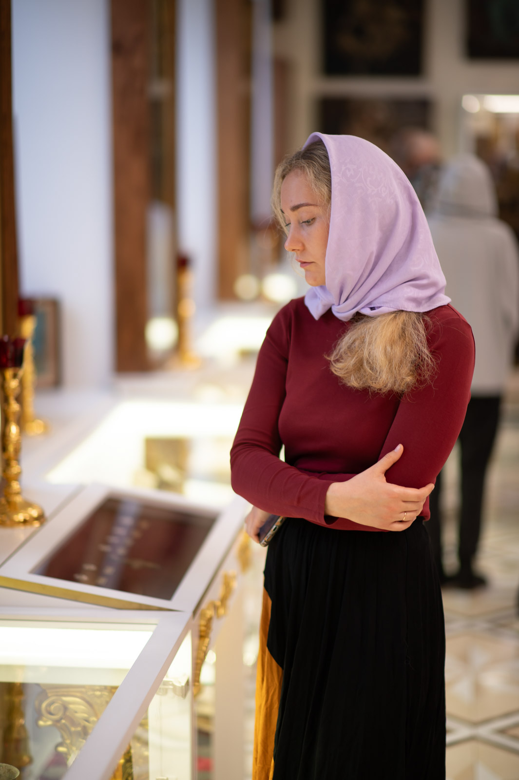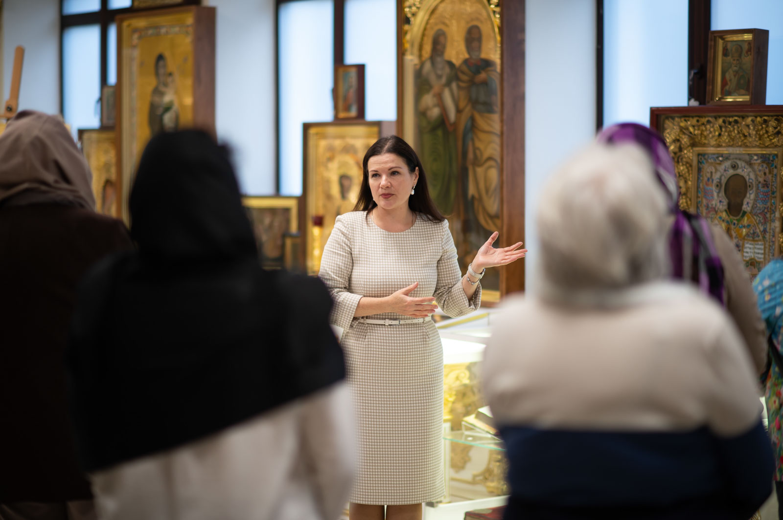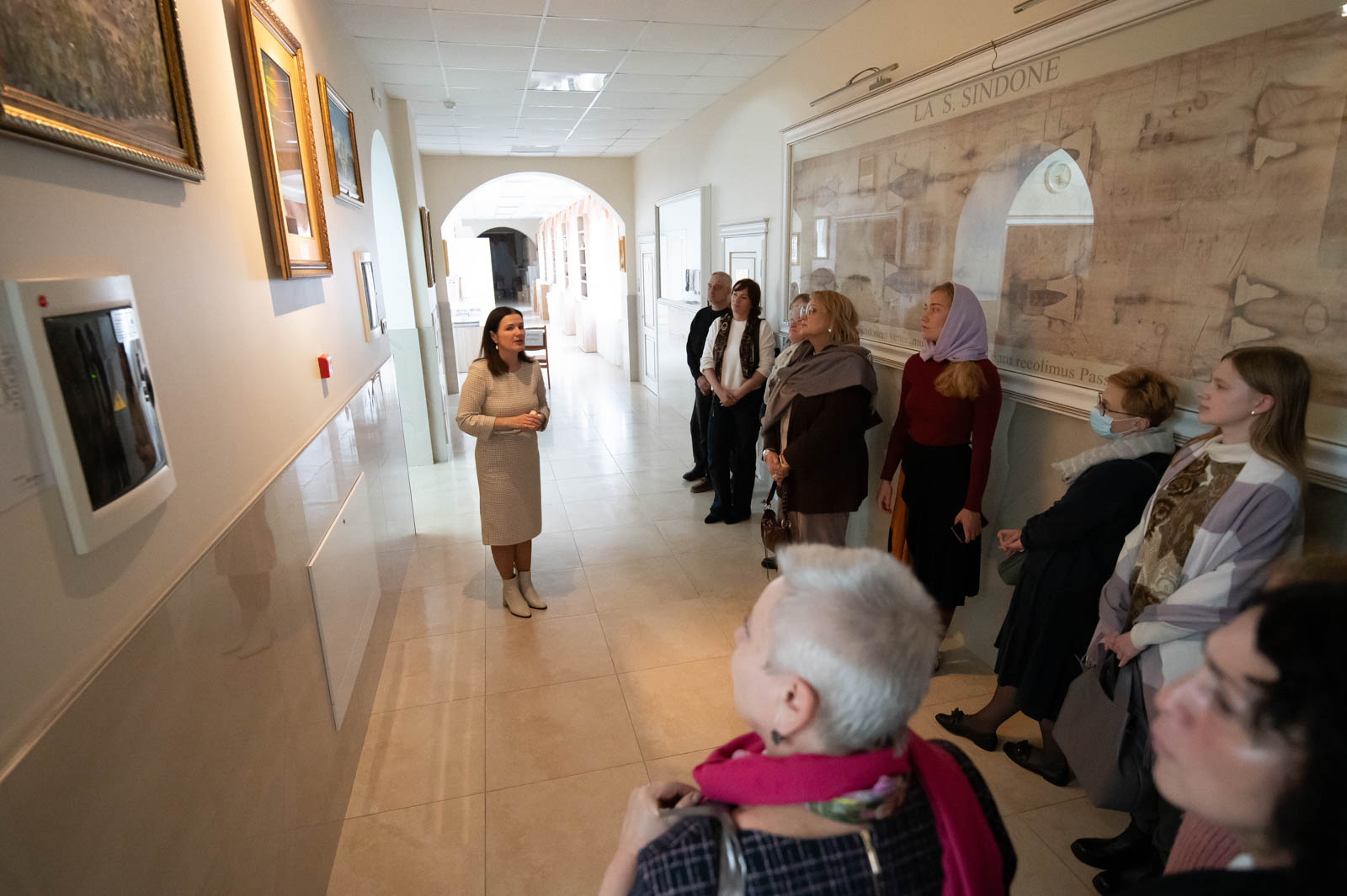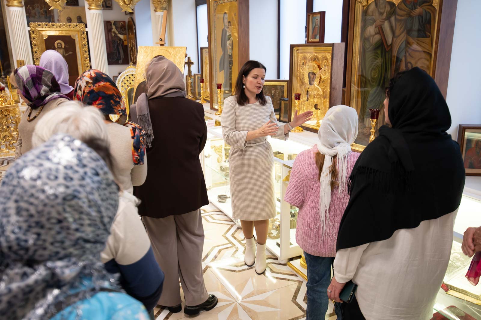 Для представителей учреждений культуры г. Гомеля была проведена экскурсия по домовому храму-музею в честь Собора всех Белорусских Святых при Гомельском епархиальном управлении, в рамках которой гости познакомились с работой реставрационной мастерской.