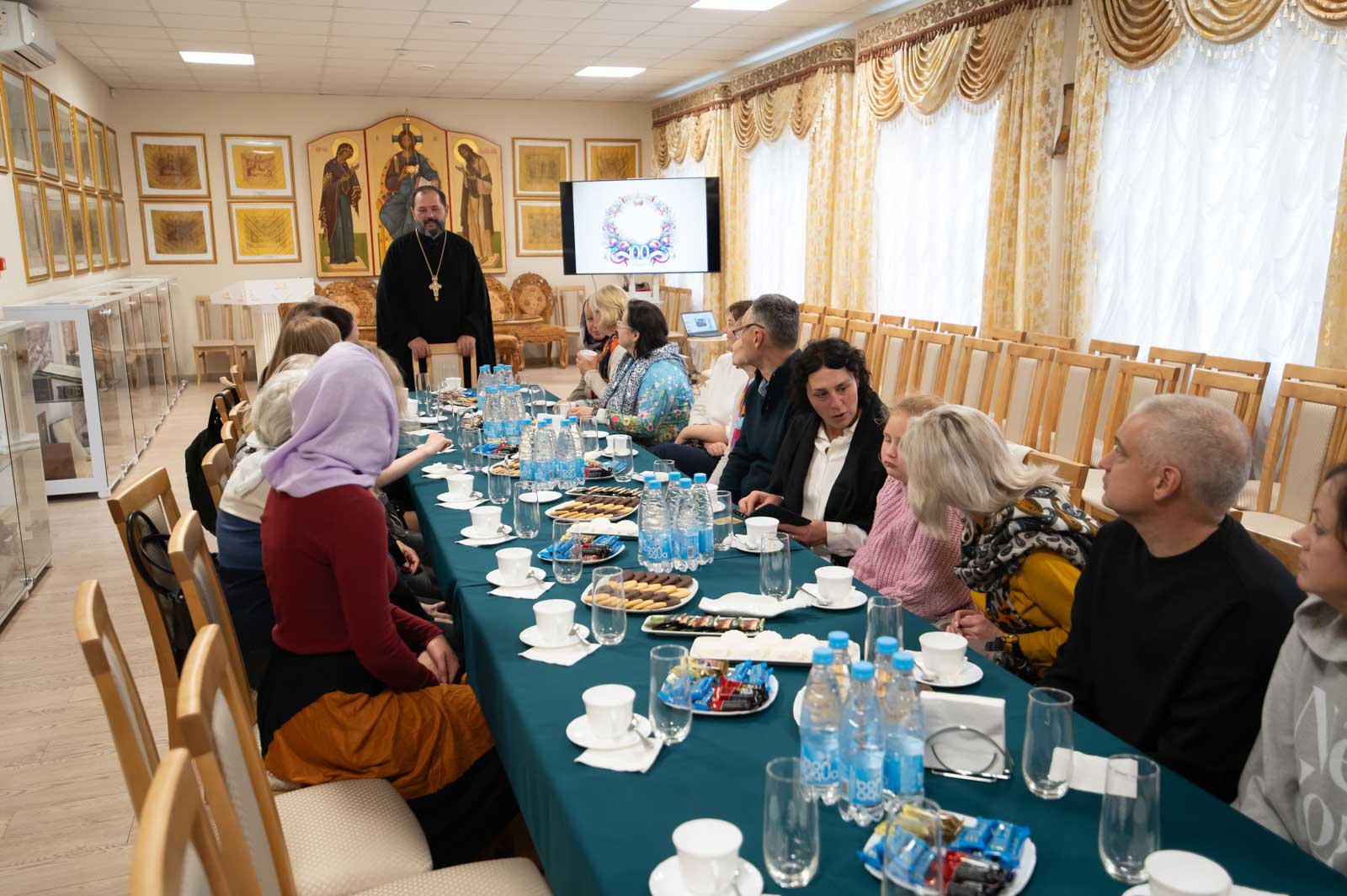 В продолжение встречи протоиерей Артемий Кривицкий, председатель отдела религиозного образования и катехизации, Хомец С.А., координатор ОРОиК, и Москальчук Ф.А., координатор молодежного отдела, провели презентацию проектов Гомельской епархии в области культуры.