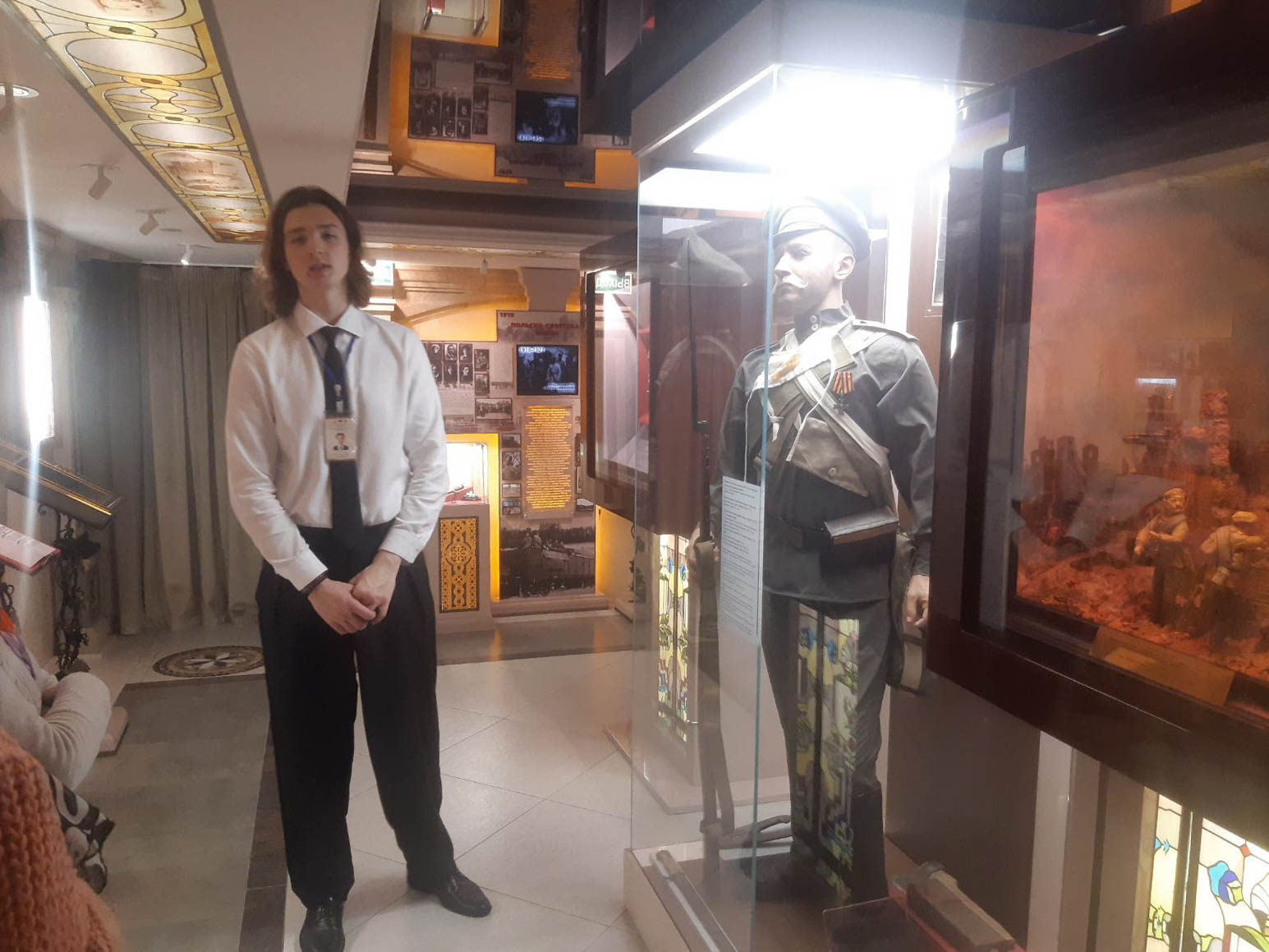Гости ознакомились с экспозицией музея, повествующей о жертвах войн и репрессий, постигших белорусскую землю с XI по XX век. Здесь представлены документы и личные вещи участников боевых действий, сведения о священниках, служивших на фронтах Второй мировой войны, а также инсталляции, посвящённые узникам лагерей смерти, в том числе Малого Тростенца.