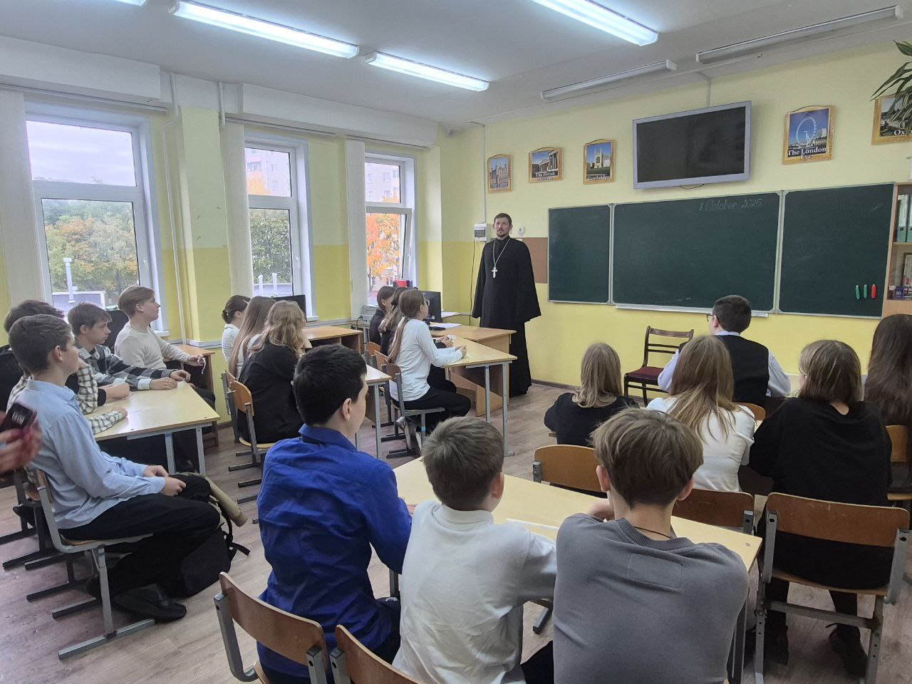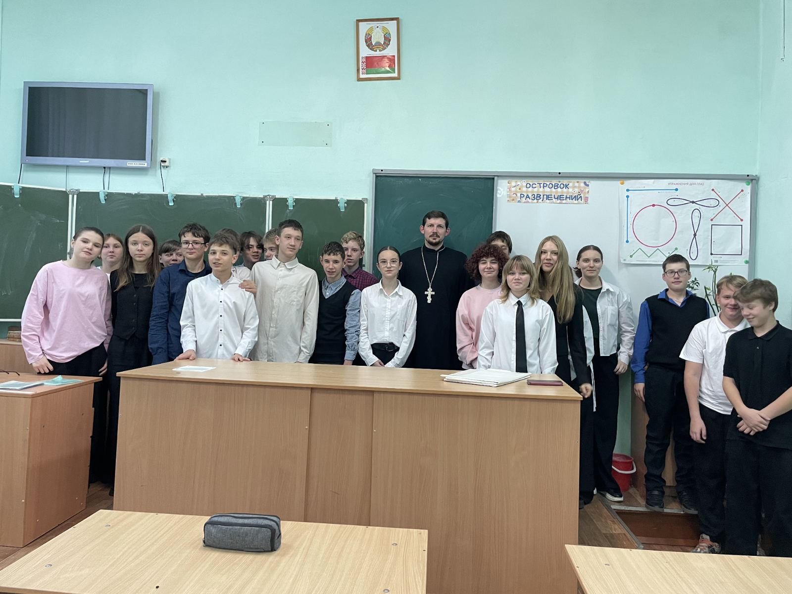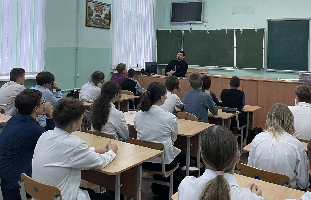 Первая встреча состоялась в школах № 11 и № 5 города Жлобина. Клирик храма святителя Василия Великого иерей Андрей Исаев рассказал учащимся о чудесном явлении Пресвятой Богородицы, спасшей осаждённый Константинополь. Он пригласил ребят задуматься о значении материнской любви — как земного отблеска заступничества Матери Божией, о долге сыновнего почитания и о том, что каждый шаг к добру начинается в семье, в благодарности родителям и уважении к их жертве. В словах священника звучала простая, но глубокая истина: вера укрепляет сердце, помогает преодолевать испытания и сохранять внутренний мир.