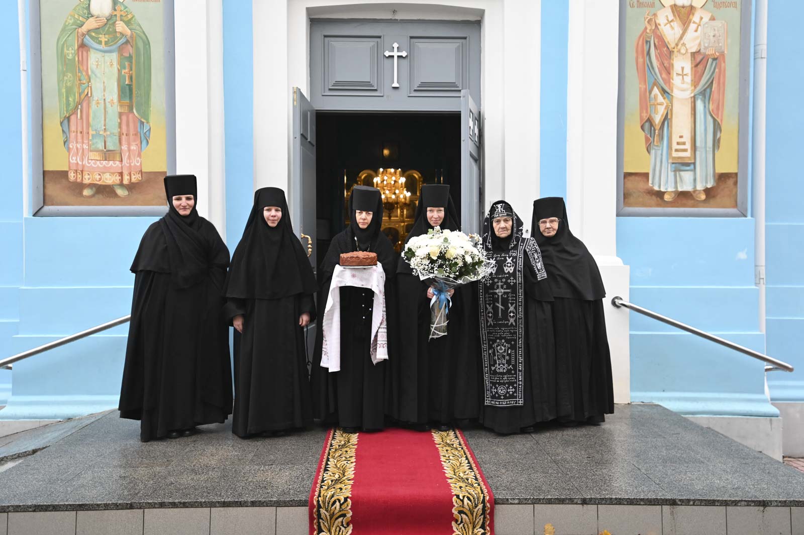 Его Высокопреосвященству сослужили: секретарь Гомельской епархии протоиерей Георгий Алампиев, старший священник монастыря архимандрит Варсонофий (Степанцов), благочинный монастырей Гомельской епархии игумен Феодорит (Золотарев) и духовенство епархии.