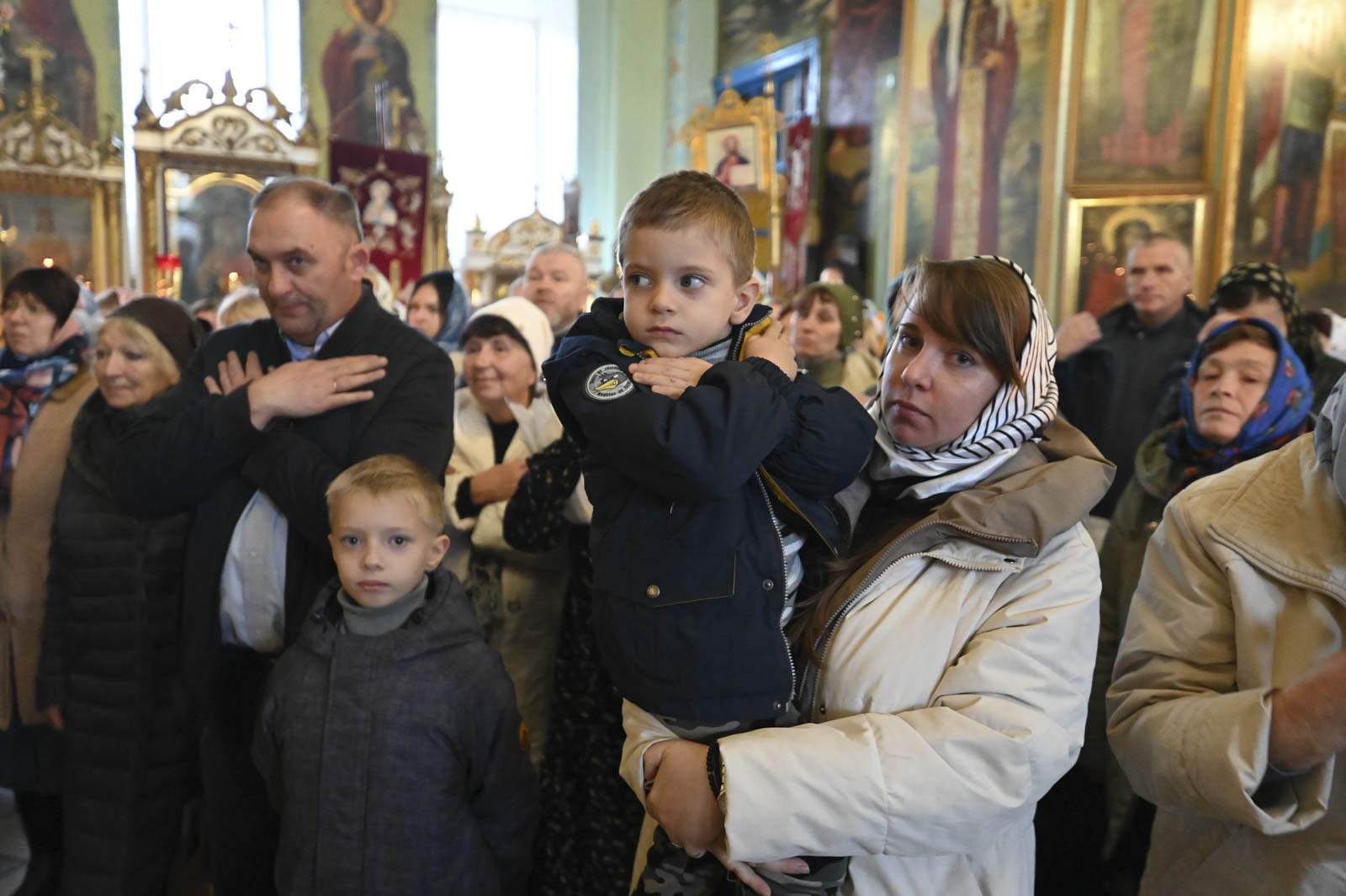 Во время Литургии были вознесены сугубые молитвы о восстановлении мира.