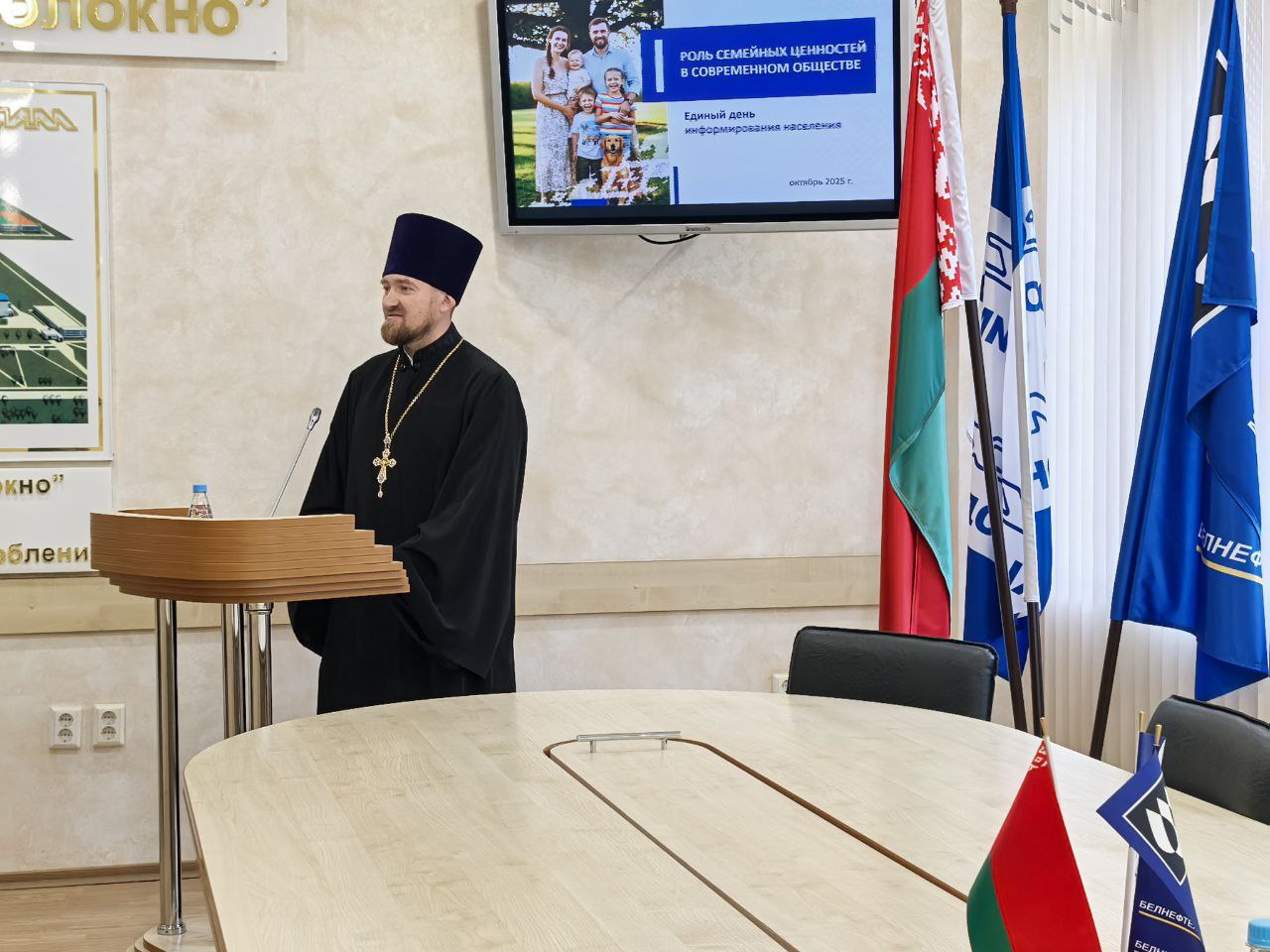 14 октября настоятель прихода храма святителя Кирилла Туровского в г.Светлогорске протоиерей Сергий Кисель принял участие в едином дне информирования на тему «Роль семейных ценностей в современном обществе». Священнослужитель в беседе коллективом ОАО «Светлогорскхимволокно» отметил, что настоящий брак — это не просто юридический договор или союз по интересам, а таинство, освященное Богом. В его основе лежат жертвенная любовь, взаимное терпение и верность, подобные отношению Христа к Церкви.