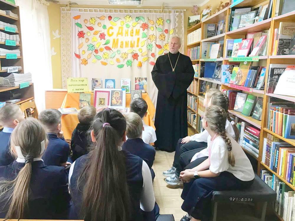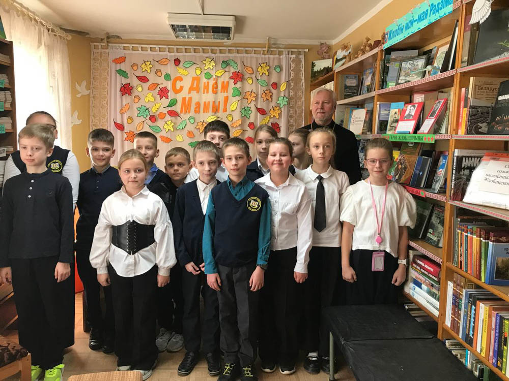 Накануне в детской районной библиотеке г. Жлобина №3 клирик прихода Святой Живоначальной Троицы в г. Жлобине протоиерей Павел Бондарчук встретился с учениками 4 класса школы №10. Он отметил, что материнство – это служение, требующее терпения, мудрости и безграничной любви.
