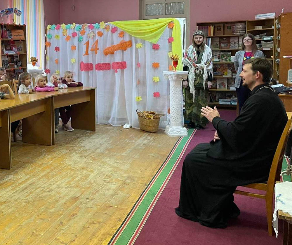 В праздничной гостиной «Под покровом материнской любви», которая прошла 14 октября в детской районной библиотеке города Жлобина для ребят из группы продлённого дня гимназии №1, принял участие клирик прихода храма святителя Василия Великого иерей Андрей Исаев. Священник рассказал детям о чудесном событии, которое легло в основу праздника Покрова. Иерей Андрей напомнил детям, что любовь и почитание родителей – это не просто человеческий долг, но и одна из важнейших заповедей Божиих.