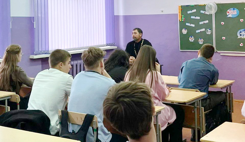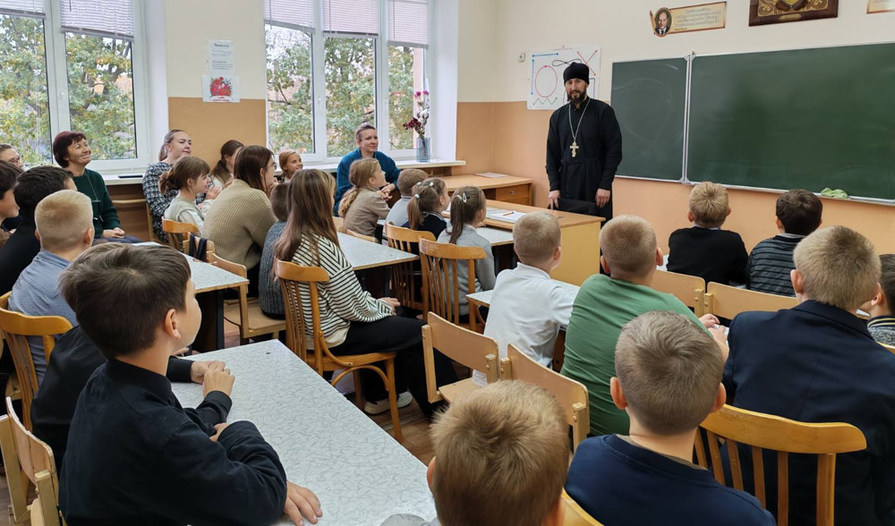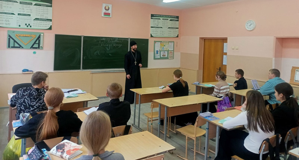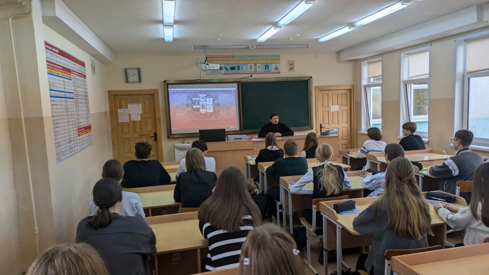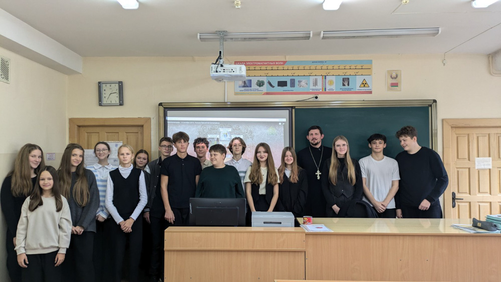 Клирик прихода храма преподобного Серафима Саровского иерей Михаил Маркосян встретился с учащимися 10 и 11 классов средней школы №6 г.Жлобина. Священник поздравил ребят с наступающим праздником, коротко рассказал о его истории. Подчеркнул, что уважение и любовь к родителям – это не просто дань традиции, а фундамент крепких семейных уз и залог счастливого будущего.