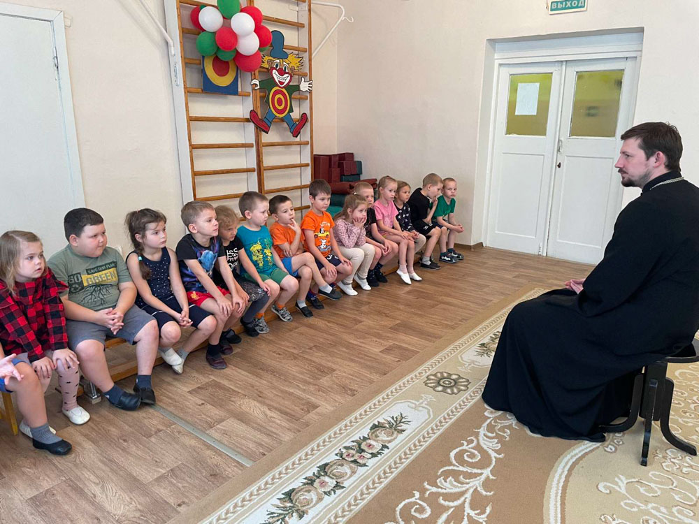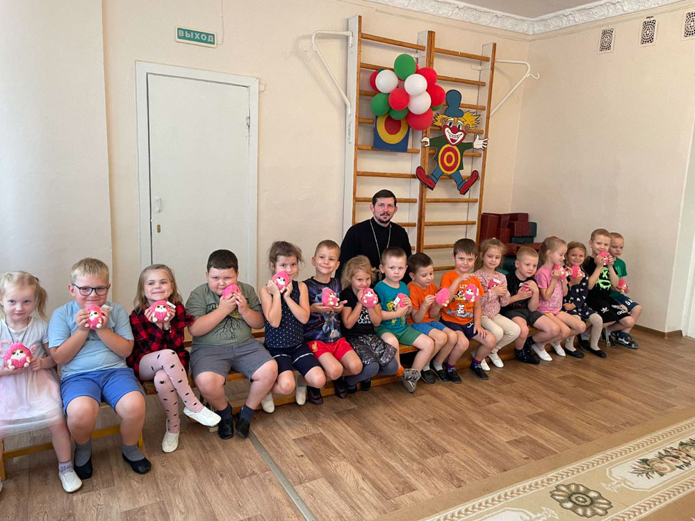 С воспитанниками детского сада №5 о празднике Покрова Пресвятой Богородицы и значении Дня матери беседовал протоиерей Павел Бондарчук, клирик храма Святой Живоначальной Троицы в г. Жлобине.