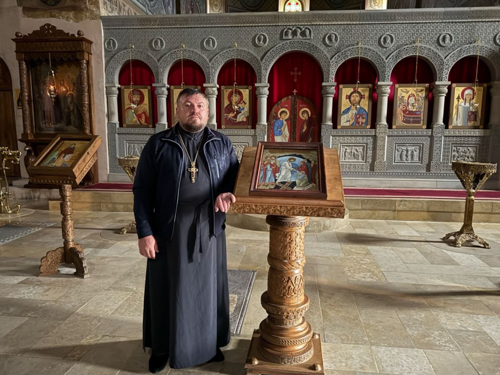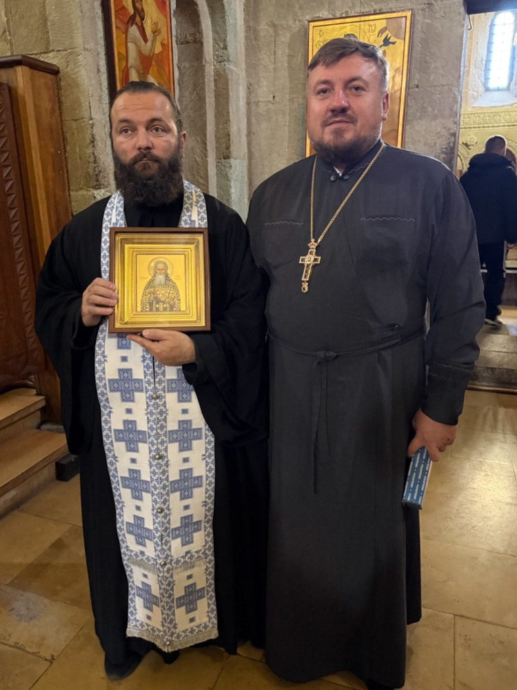По благословению Высокопреосвященнейшего Стефана, архиепископа Гомельского и Жлобинского, отец Александр передал в дар храму Двенадцати апостолов в Мцхете икону святого праведного Иоанна Кормянского, а старинному мужскому монастырю – образ другого белорусского подвижника – святого Митрофана Краснопольского.