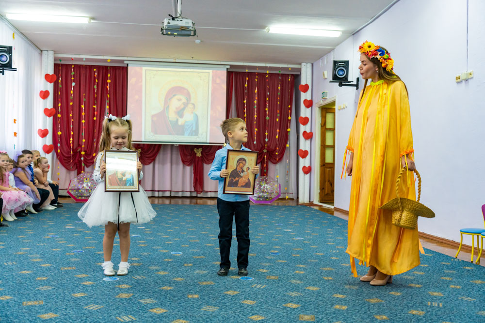 14 октября в ГУО «Детский сад №170 г. Гомеля» прошло мероприятие, посвящённое Покрову Пресвятой Богородицы и Дню матери. На празднике присутствовали и. о. наместника Никольского мужского монастыря г.Гомеля игумен Феодорит (Золотарев), координатор отдела религиозного образования и катехизации Гомельской епархии Хомец Светлана Александровна.