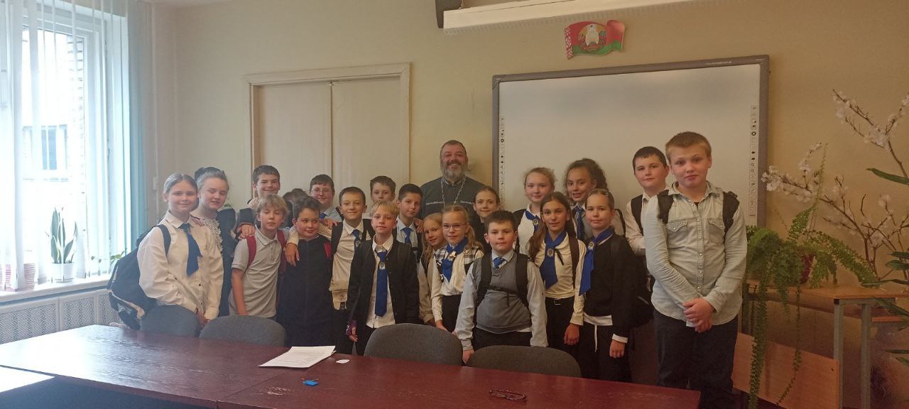 В рамках Недели Родительской Любви настоятель прихода храма Скитковской иконы Божией Матери в г. Гомеле, протоиерей Максим Колеватов, провёл встречу с учащимися пятого класса ГУО «Средняя школа №47 г.Гомеля».