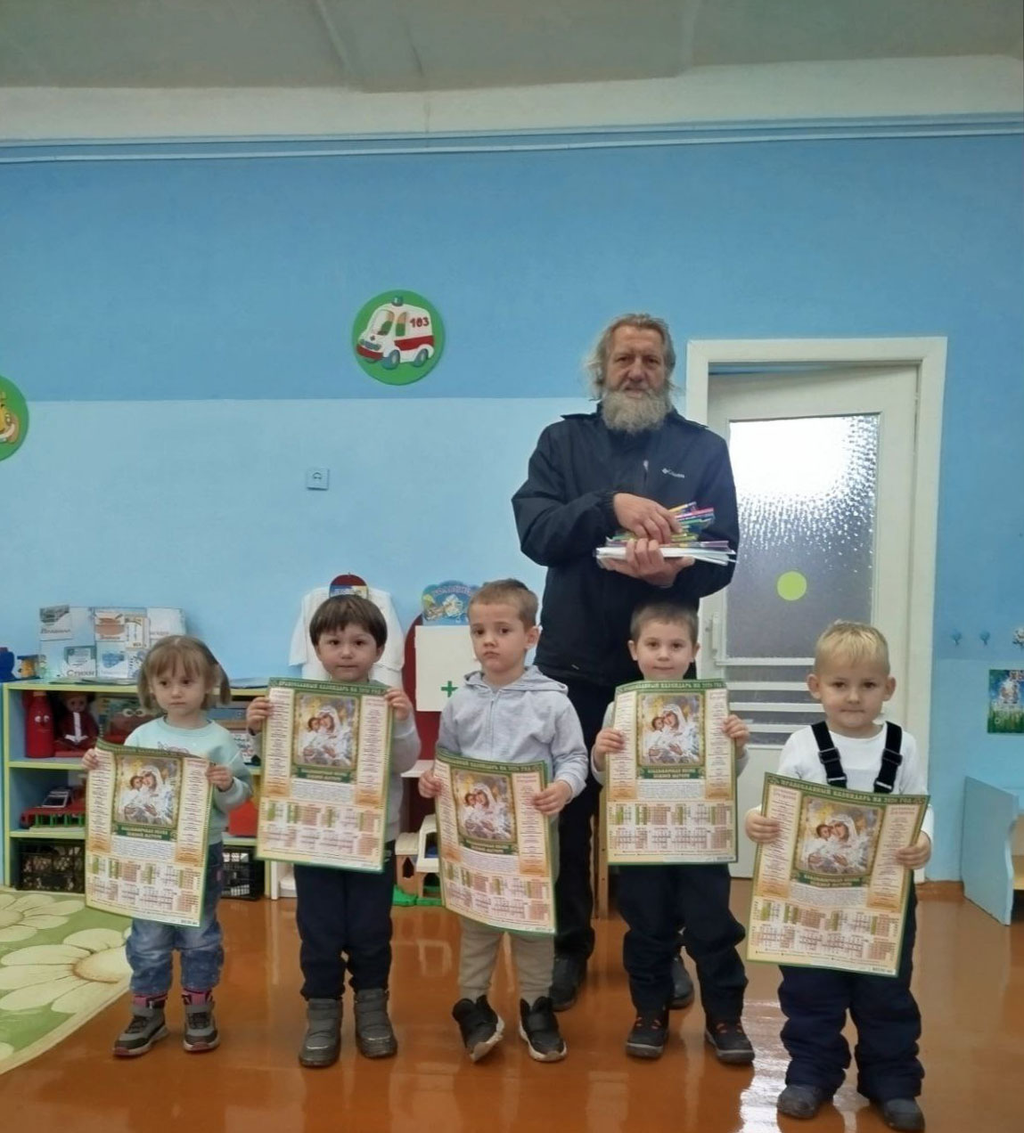 Не остался без внимания и санаторный детский сад №4, который посетил настоятель храма в аг. Дворец протоиерей Владимир Янчесов. Священник подарил детям сладости, наборы для творчества и православные календари.