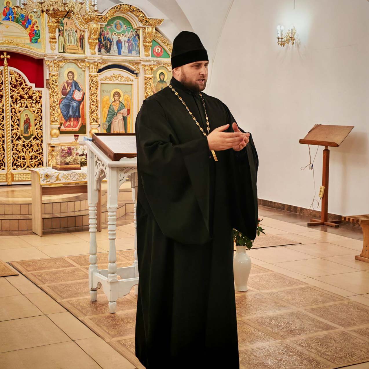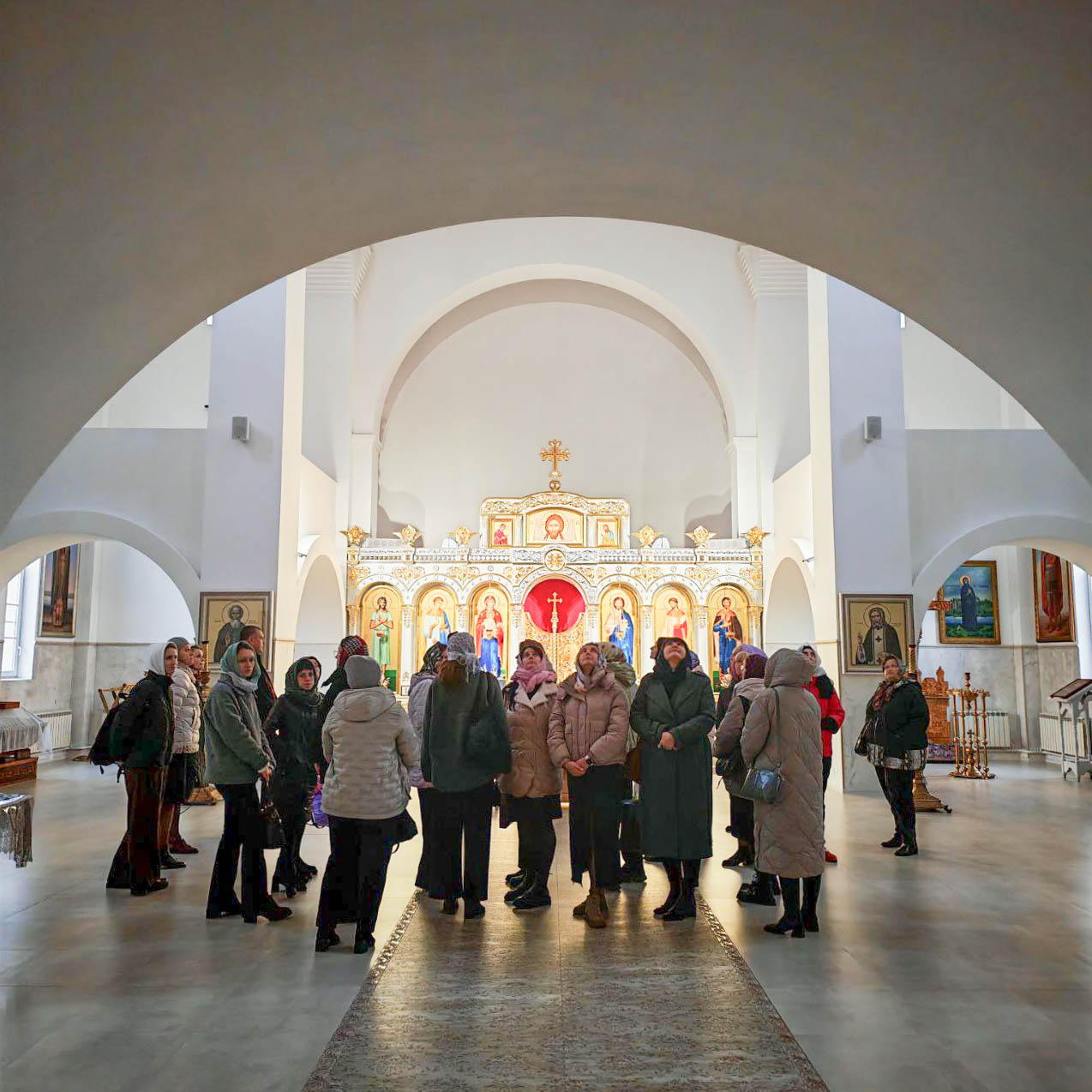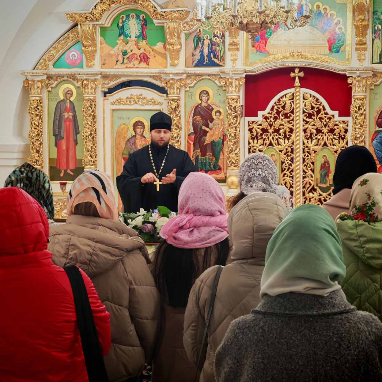 Благочинный Рогачёвского церковного округа иерей Алексей Сергеев встретил экскурсантов и познакомил их с историей, устройством храма и его святынями.