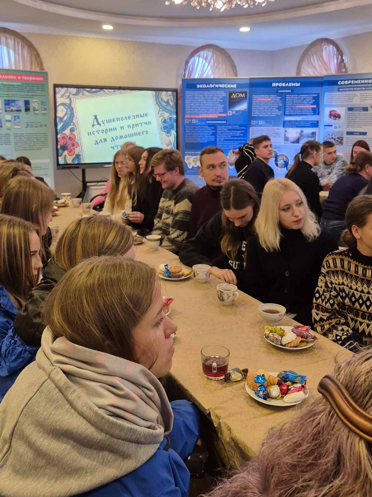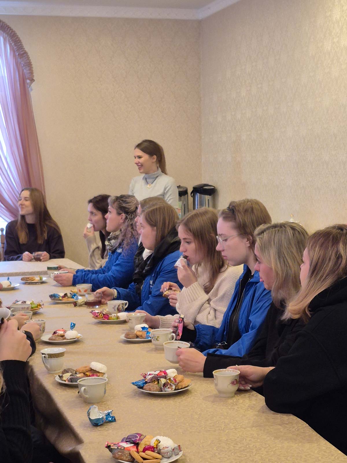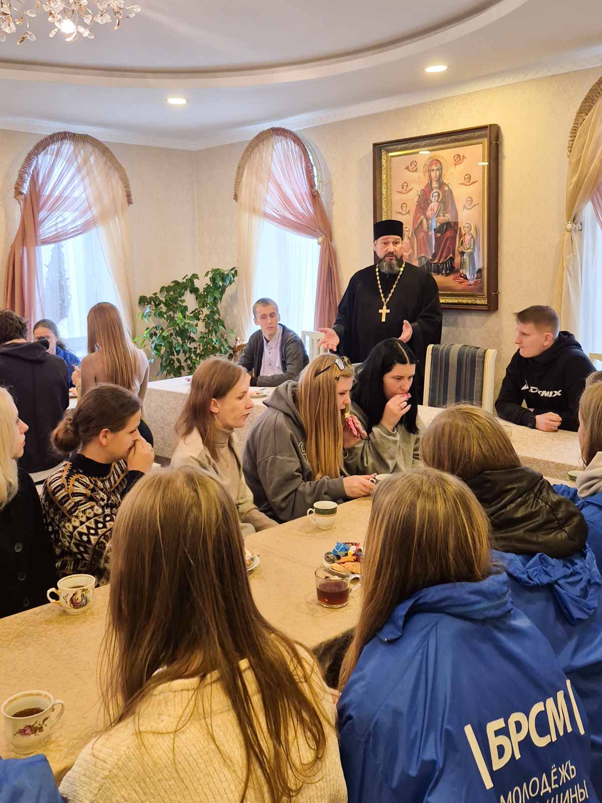 После трудовой части встреча продолжилась в тёплой атмосфере за чашкой чая. В диалоге с молодёжью участвовал первый секретарь Гомельского областного комитета ОО «БРСМ» Игорь Викторович Назарчук. Разговор с отцом Василием перешёл в живое обсуждение духовных и жизненных тем.