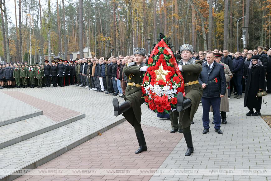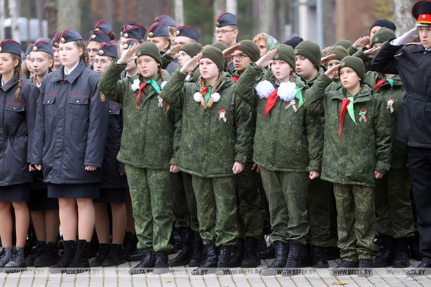 В церемонии приняли участие заместитель председателя Гомельского облисполкома Дмитрий Алейников, начальник Гомельского гарнизона – военный комиссар Гомельской области Андрей Кривоносов, благочинный церквей Гомельского района протоиерей Артемий Кривицкий, а также кадеты и лицеисты профильных классов учреждений образования г. Гомеля.