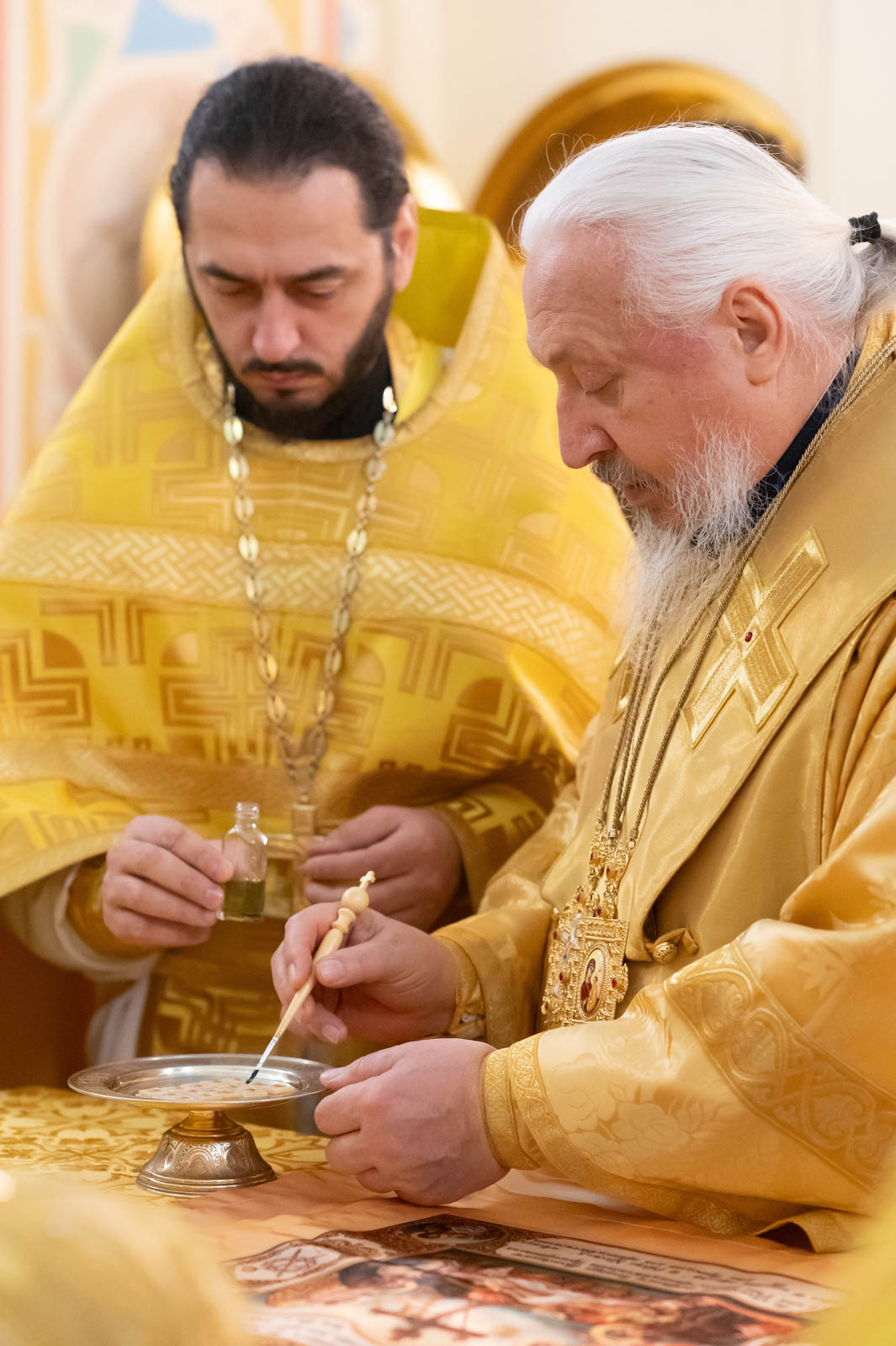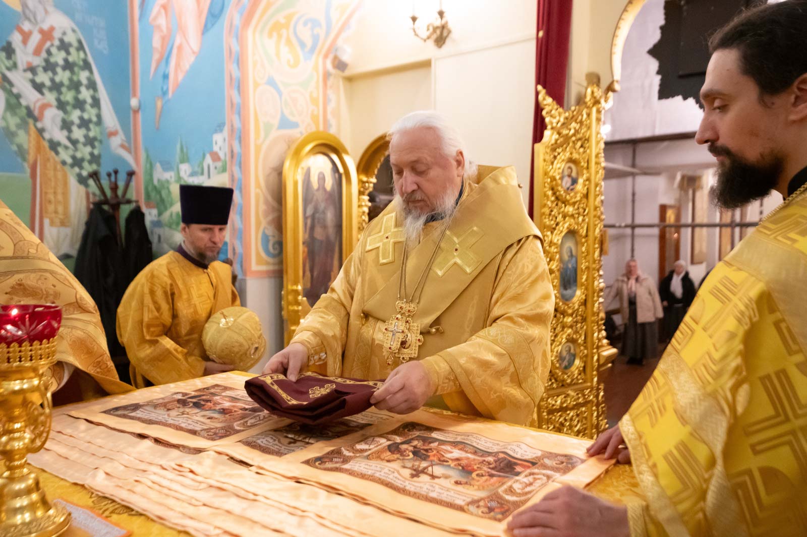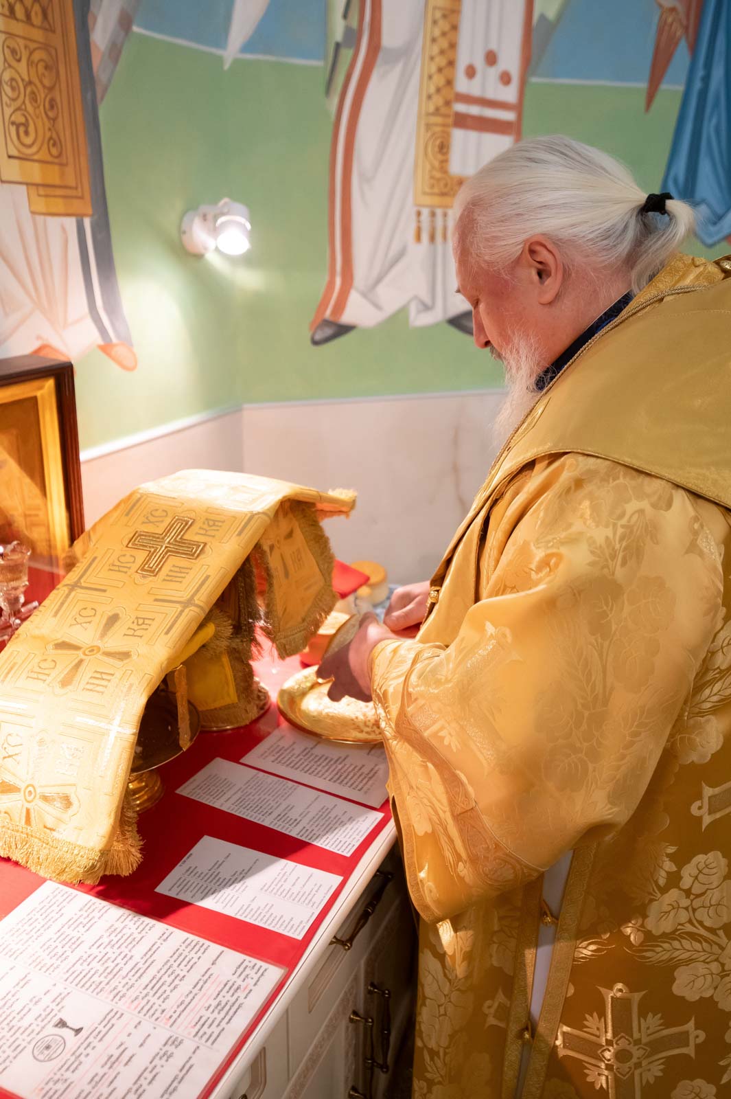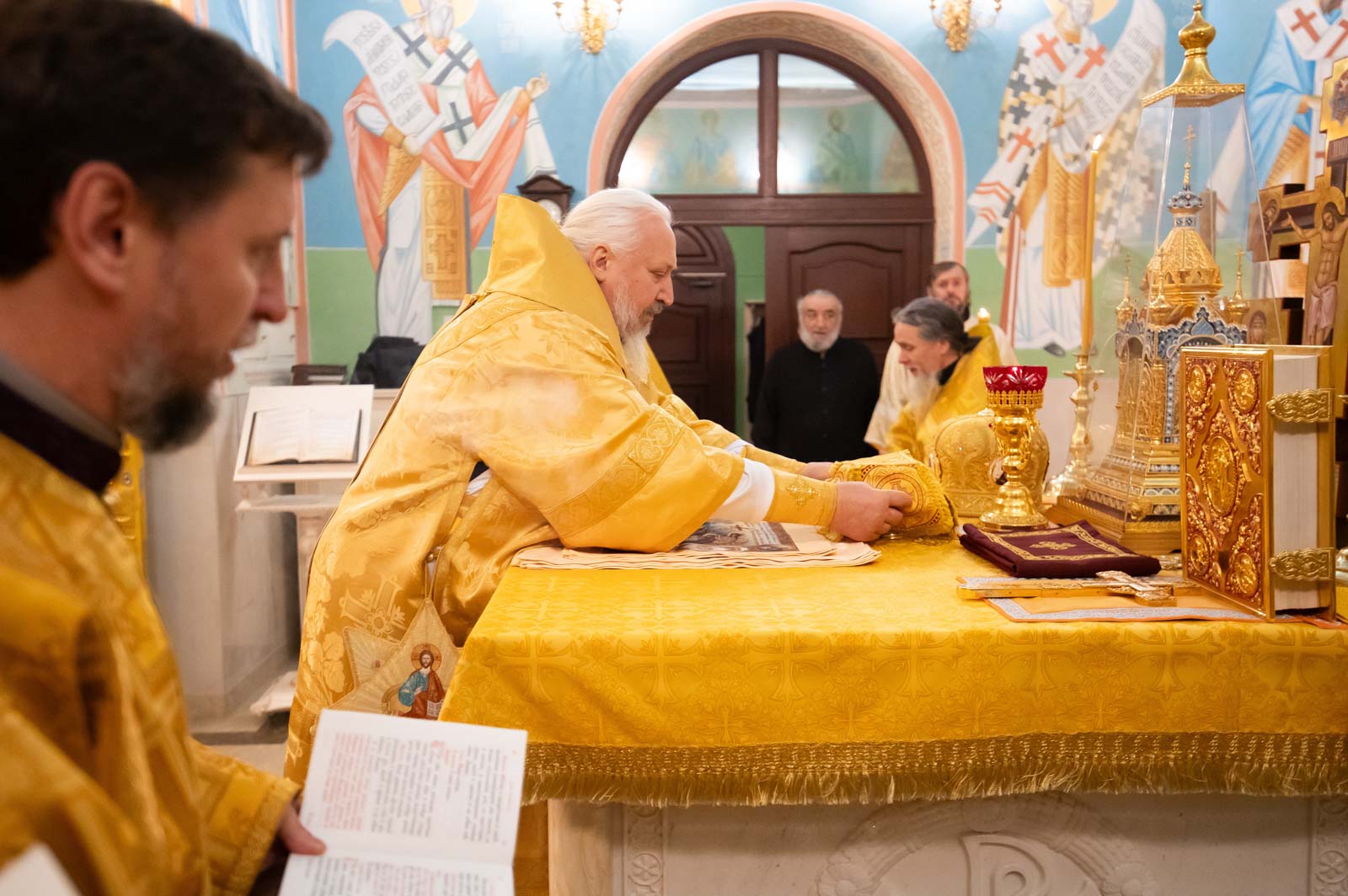 За Божественной литургией Владыка совершил чин освящения антиминсов — особого церковного священнодействия, имеющего важнейшее значение в евхаристической жизни Церкви.