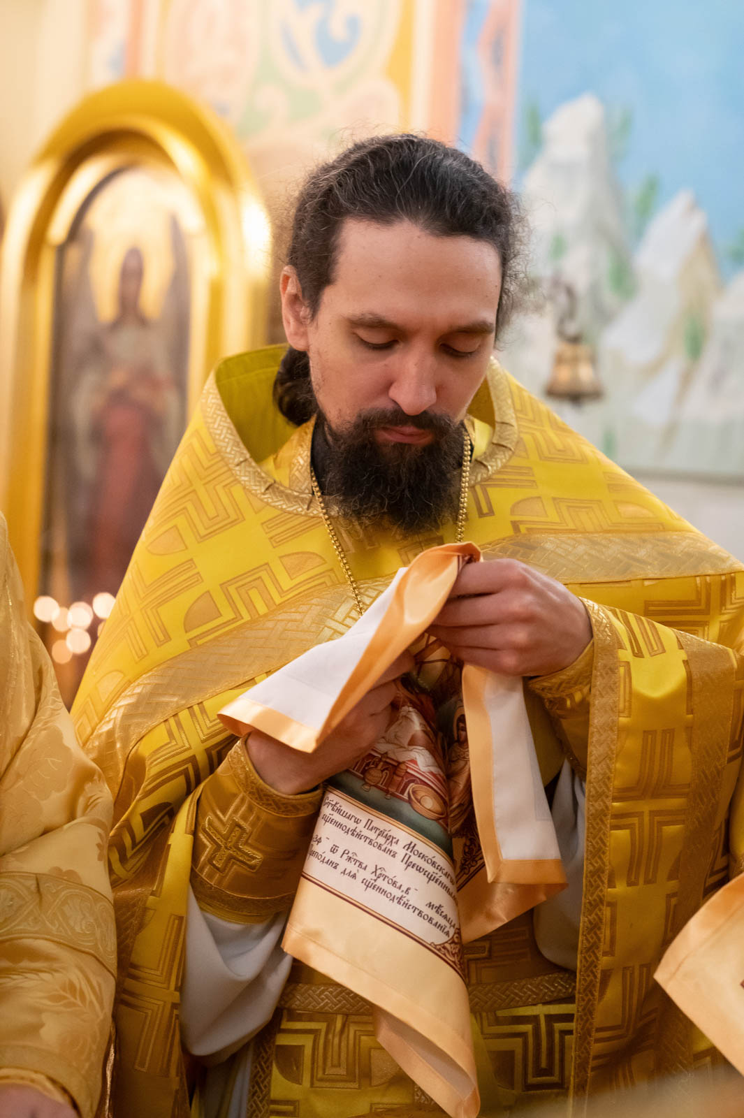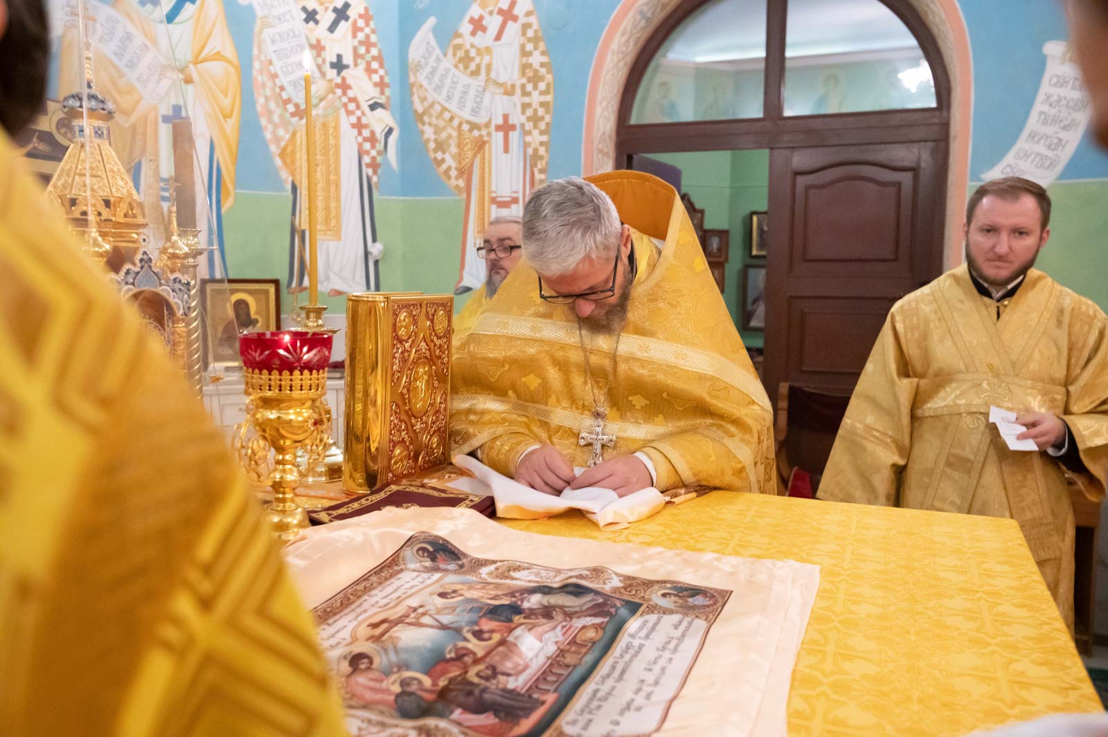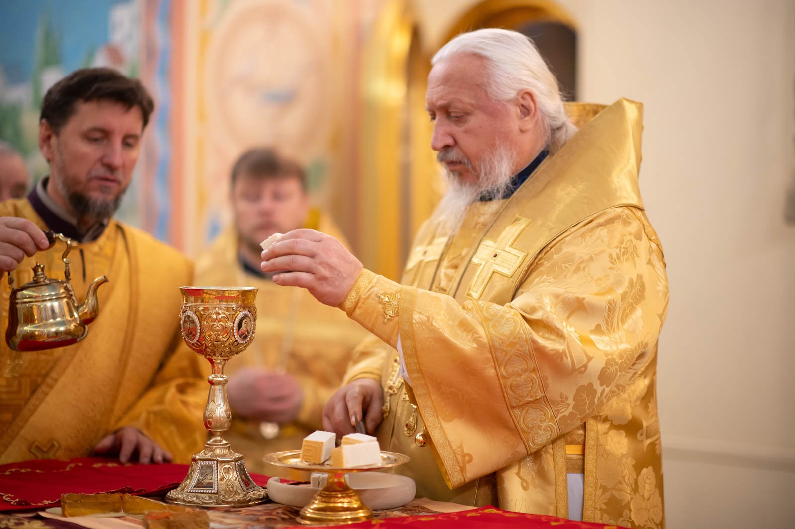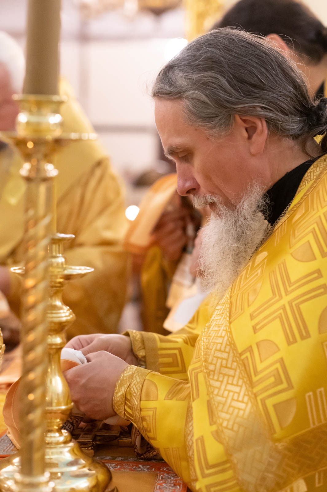 За Божественной литургией Владыка совершил чин освящения антиминсов — особого церковного священнодействия, имеющего важнейшее значение в евхаристической жизни Церкви.