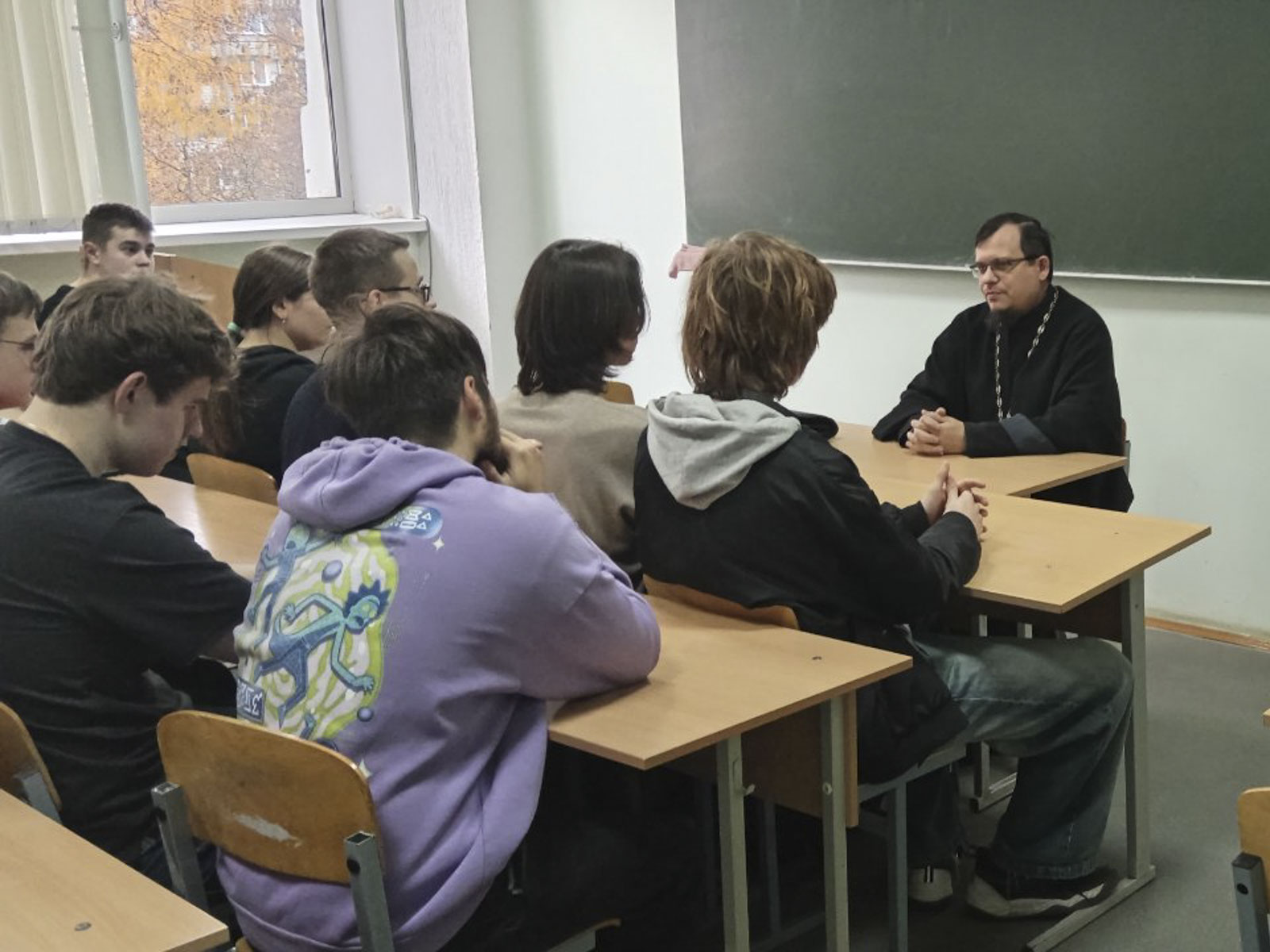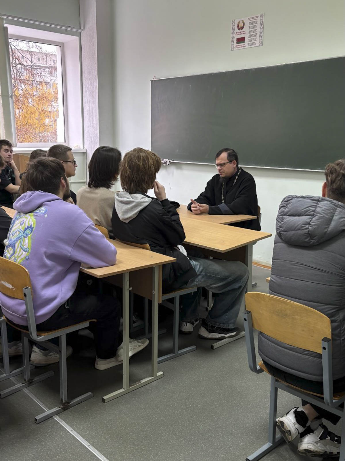 28 октября состоялась встреча-беседа студентов факультета математики и технологий программирования с иереем Сергием Климовым, настоятелем храма преподобного Сергия Радонежского в г. Гомеле, преподавателем Библейско-Богословских курсов Гомельской епархии, на тему: «Церковь и личность».