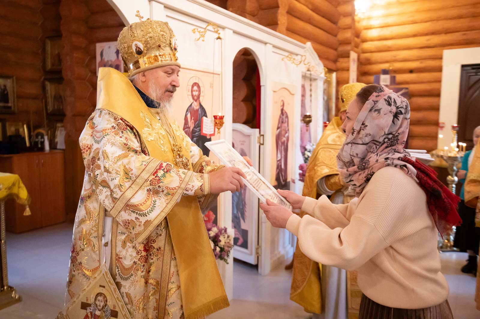 По завершении богослужения архиепископ Стефан поздравил духовенство и прихожан с престольным праздником, причастников с принятием Святых Христовых Таин и обратился к молящимся с архипастырским словом.