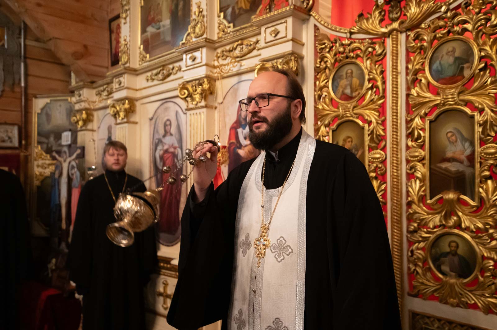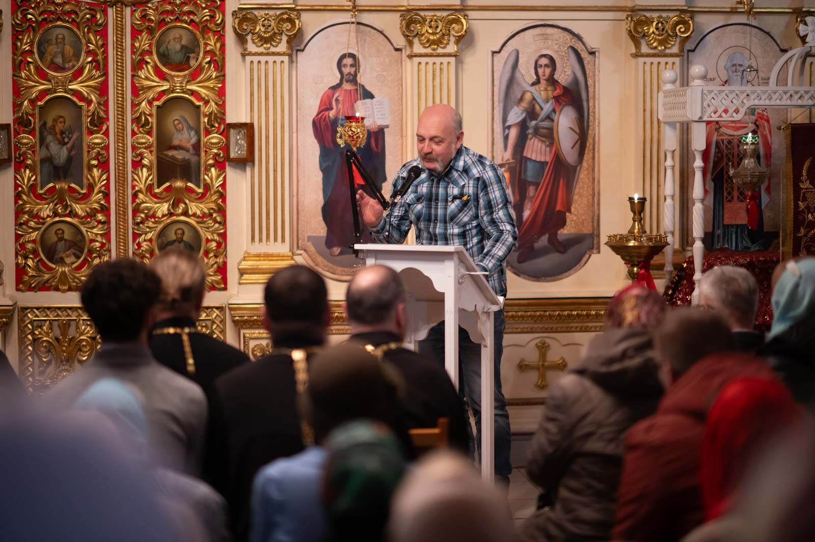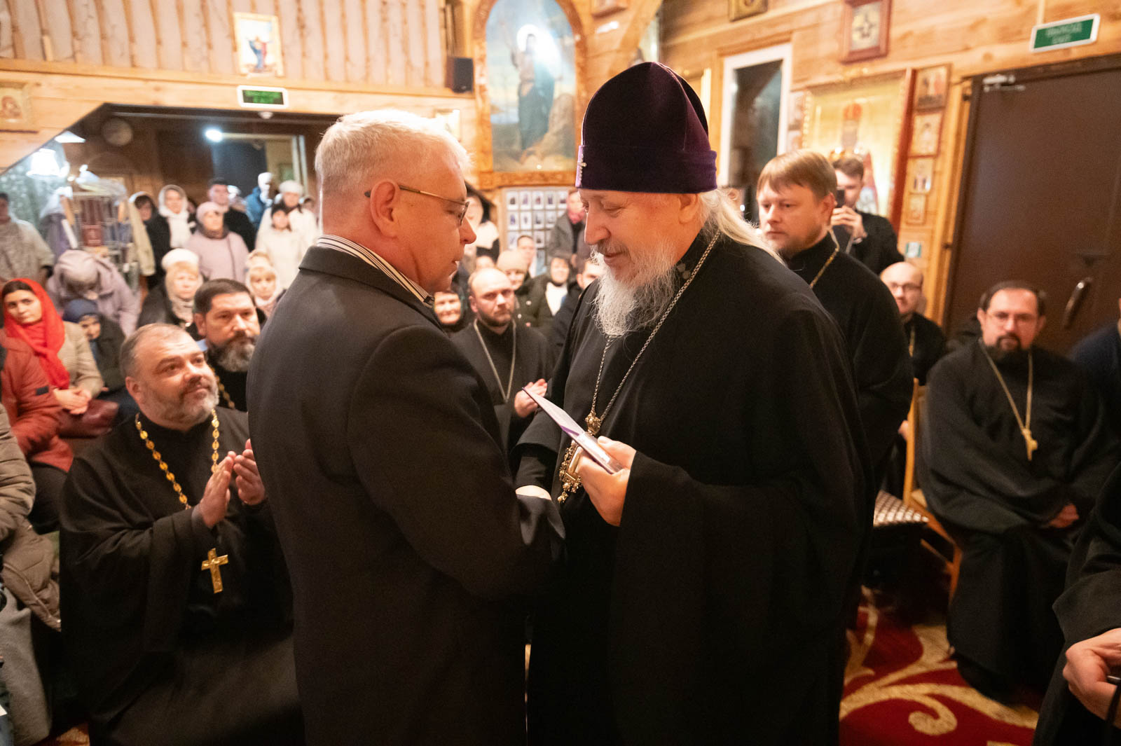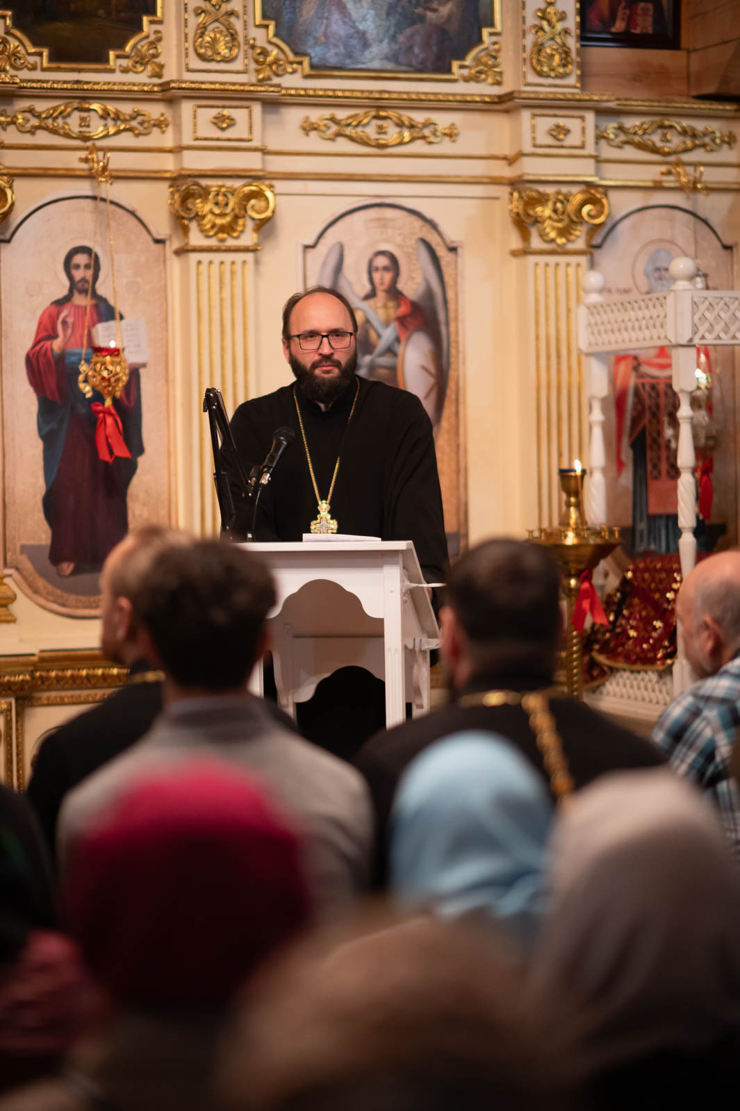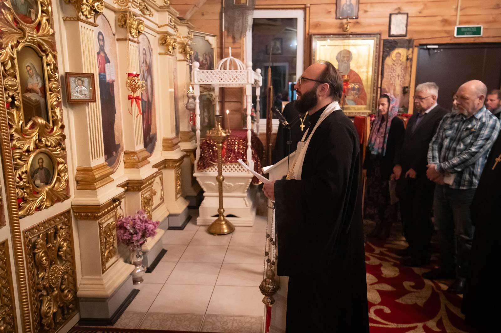 В завершении вечера протоиерей Александр Лопушанский презентовал экспозицию рукописей, фотографий, икон и книг монашеской общины из д. Огородня.