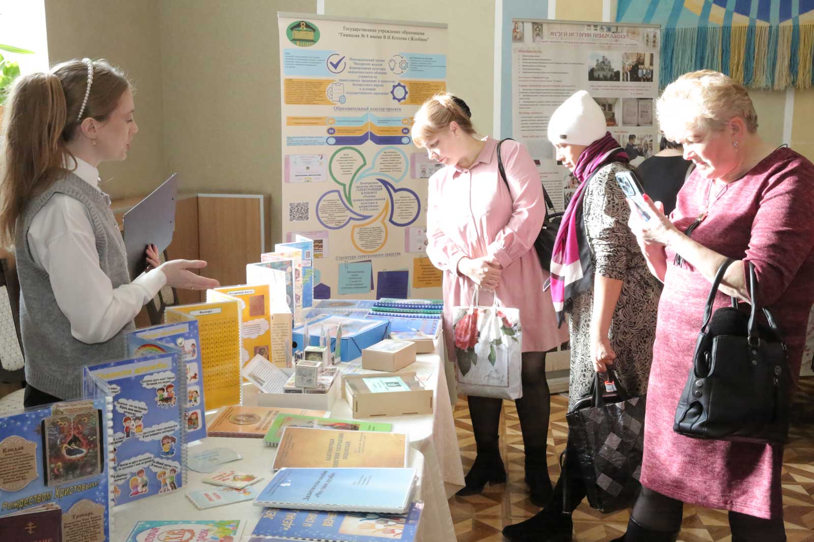 Погрузиться в тему участники форума смогли ещё в фойе. Учреждения образования (гимназия № 8 имени В.И.Козлова, средние школы № 9 и №12) поделились своими методические наработками по духовно-нравственному и патриотическому воспитанию. Центральная районная библиотека имени Н.К.Крупской организовала книжную экспозицию духовно-нравственной тематики. Выставка рисунков о святых земли Белорусской была представлена работами воспитанников воскресной школы прихода храма святителя Василия Великого в г.Жлобине.