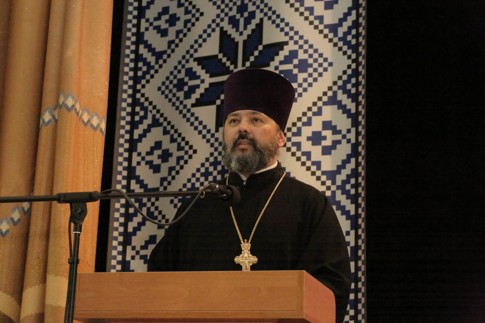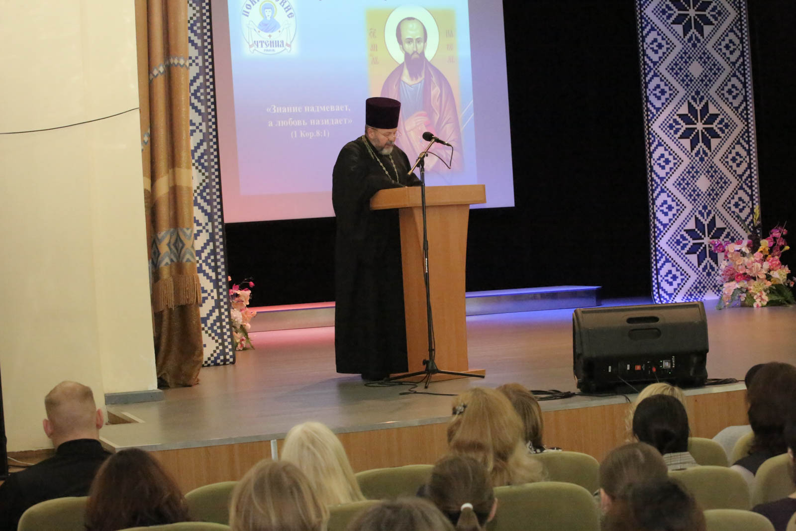 Председатель отдела религиозного образования и катехизации Гомельской епархии протоиерей Артемий Кривицкий зачитал приветственное слово Высокопреосвященнейшего Стефана, архиепископа Гомельского и Жлобинского.