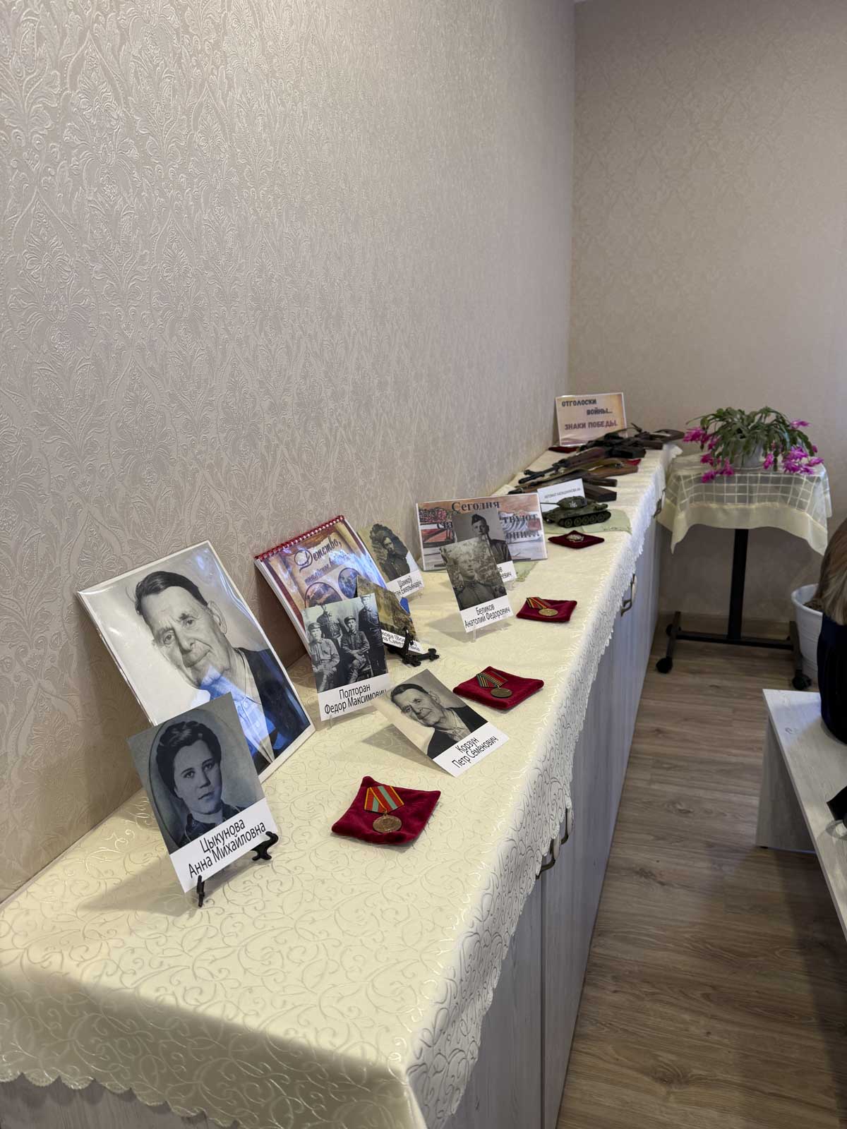 Мероприятие сопровождала фотовыставка «Сегодня свидетельствуют они», а также экспозиция предметов, связанных с военной историей. На выставке были представлены макеты оружия времён войны, а также ордена, медали и наградные книжки, бережно сохранённые в семьях участников конкурса.