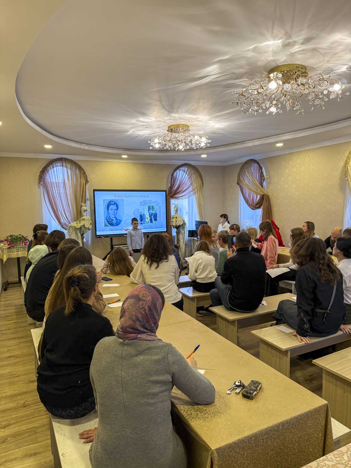 Воспитанники воскресной школы прихода подготовили трогательные рассказы о судьбах своих прадедов и прабабушек, прошедших через суровые испытания Великой Отечественной войны. В их историях ожили страницы семейной памяти — фронтовые письма, фотографии, воспоминания о подвигах и жертвах, о вере, которая помогала выстоять в самые тяжёлые минуты.