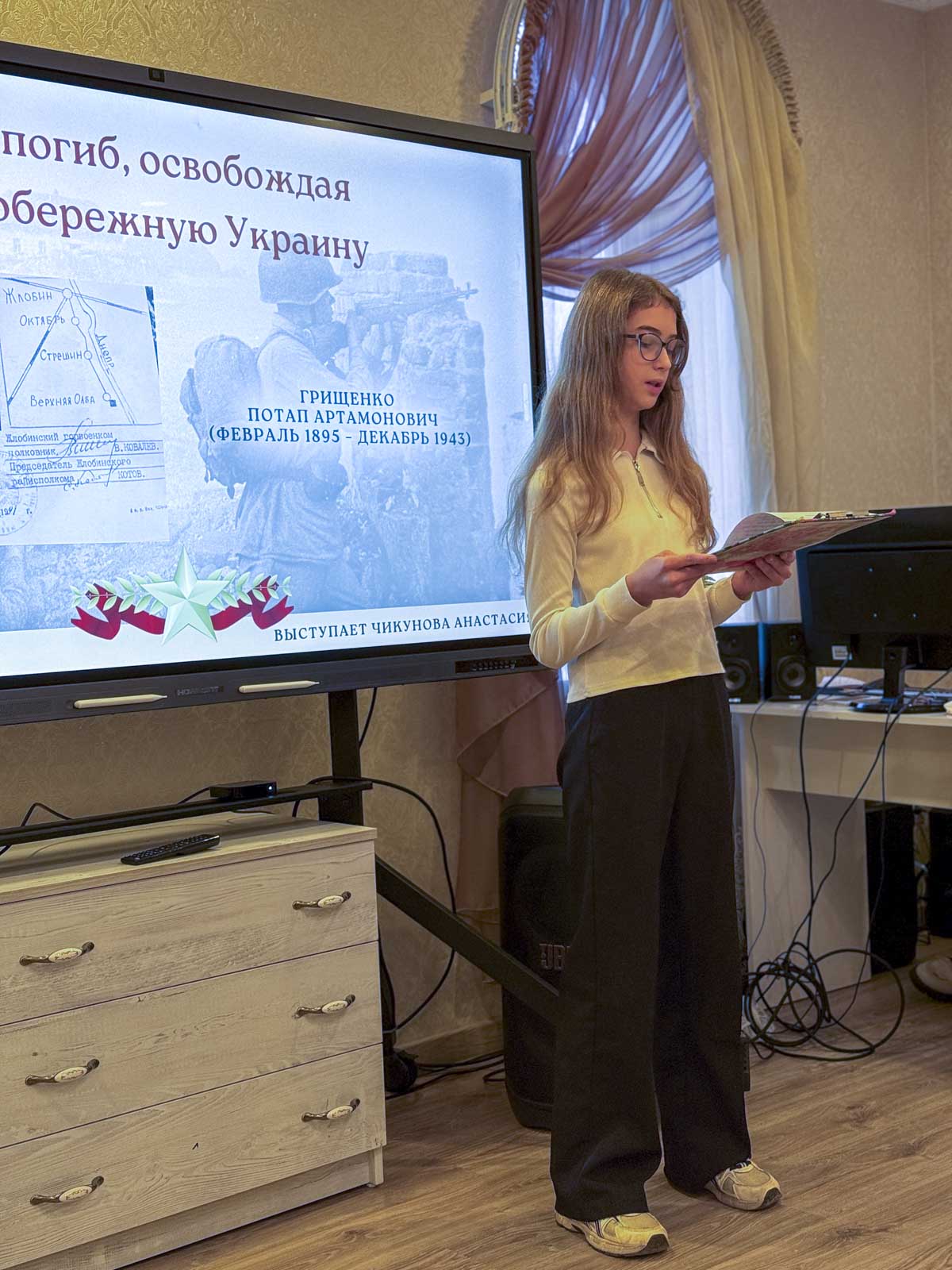 II место – Чикунова Анастасия, «Он погиб, освобождая левобережную Украину»