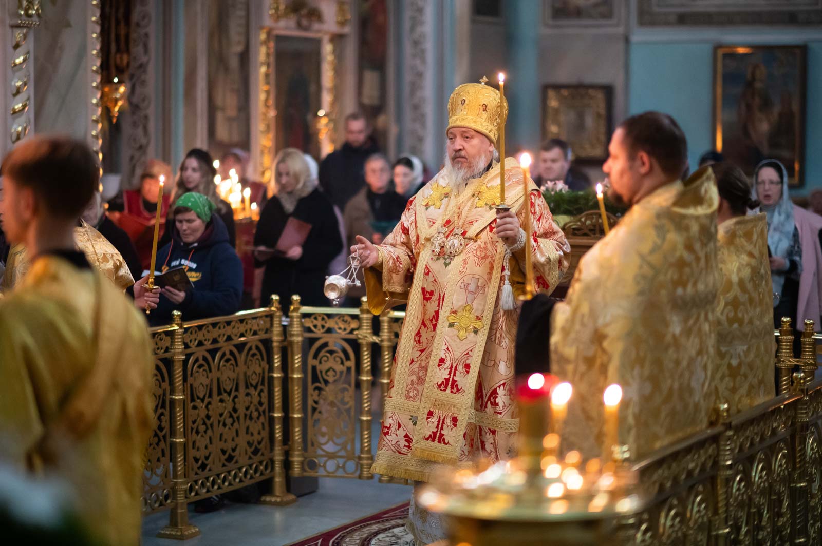 Вечернее богослужение с чтением акафиста на распев 9 ноября 2025 года в Петро-Павловском кафедральном соборе г.Гомеля совершил Высокопреосвященнейший Стефан, архиепископ Гомельский и Жлобинский.
