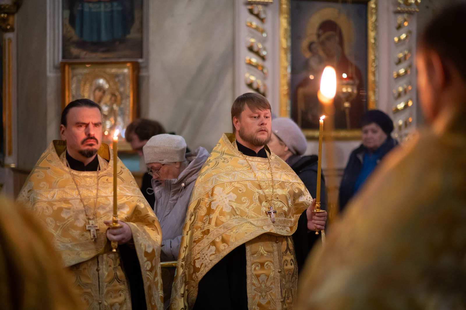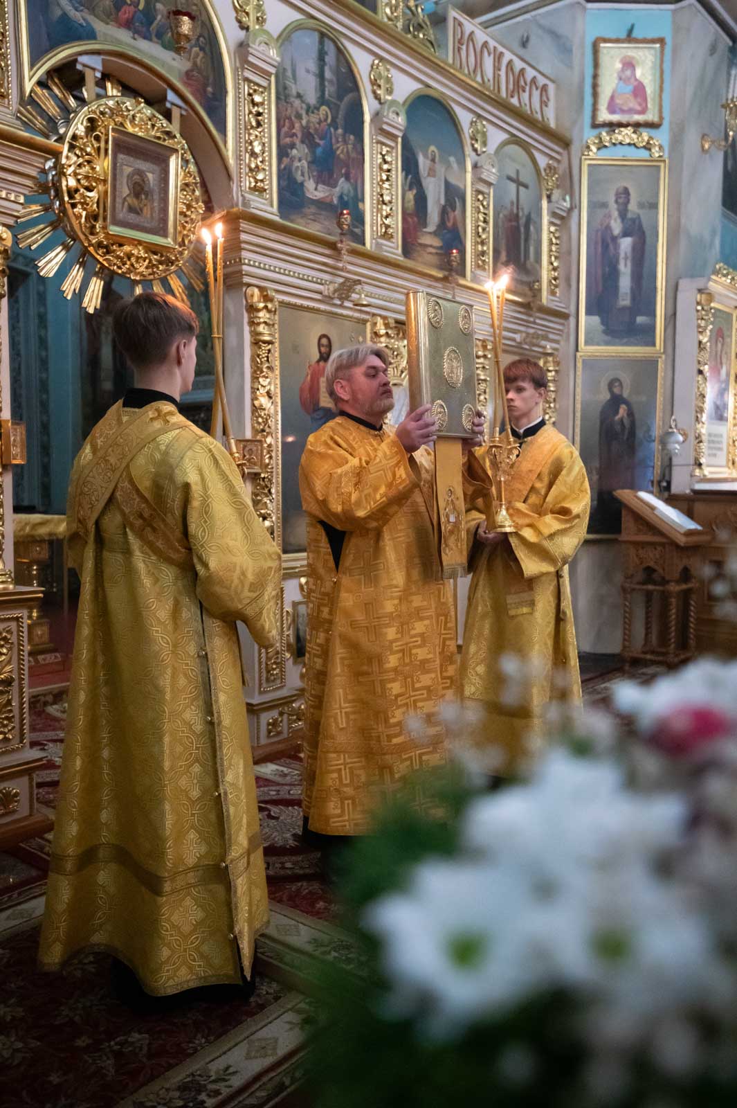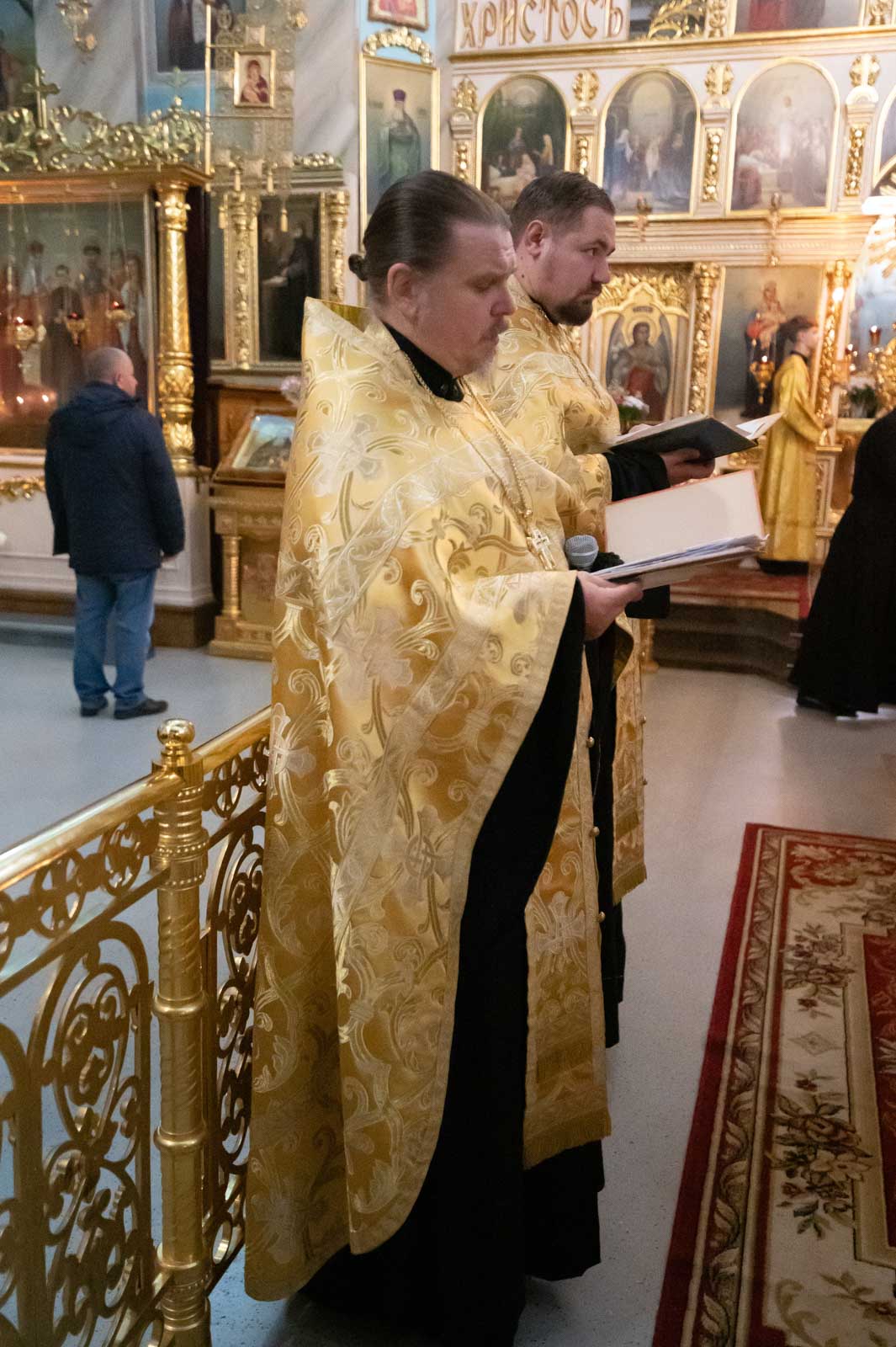 Его Высокопреосвященству сослужили секретарь Гомельской епархии протоиерей Георгий Алампиев и клирики кафедрального собора.