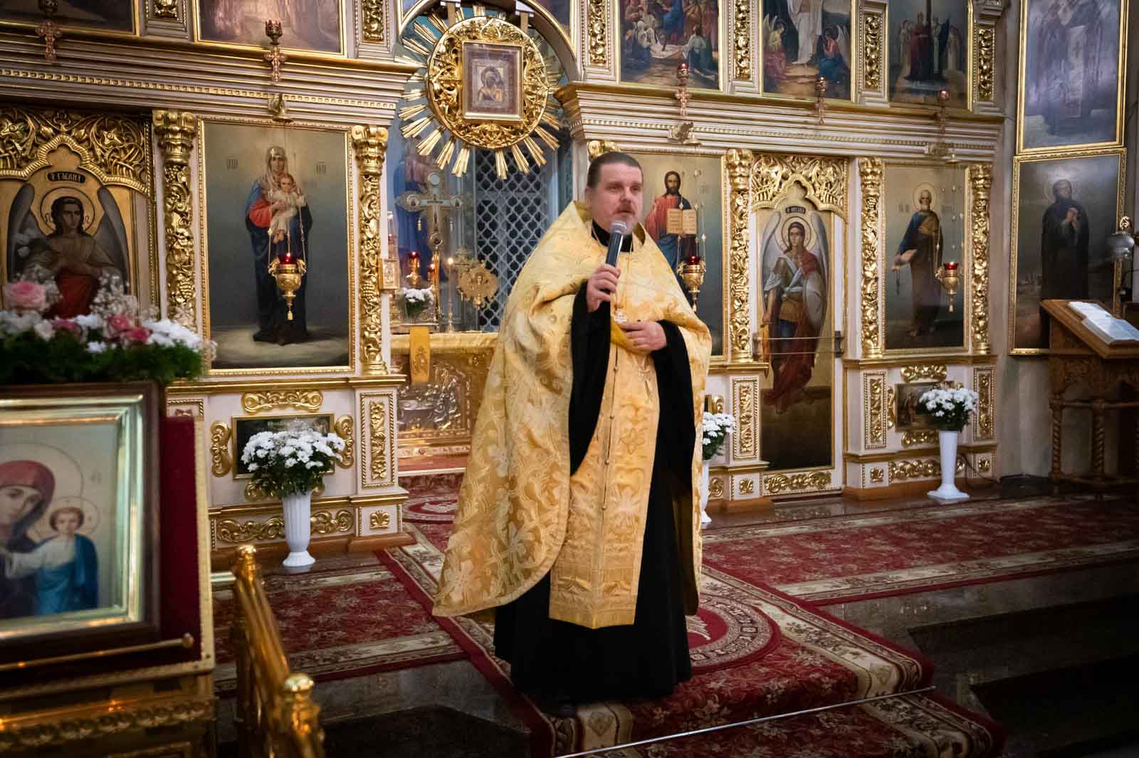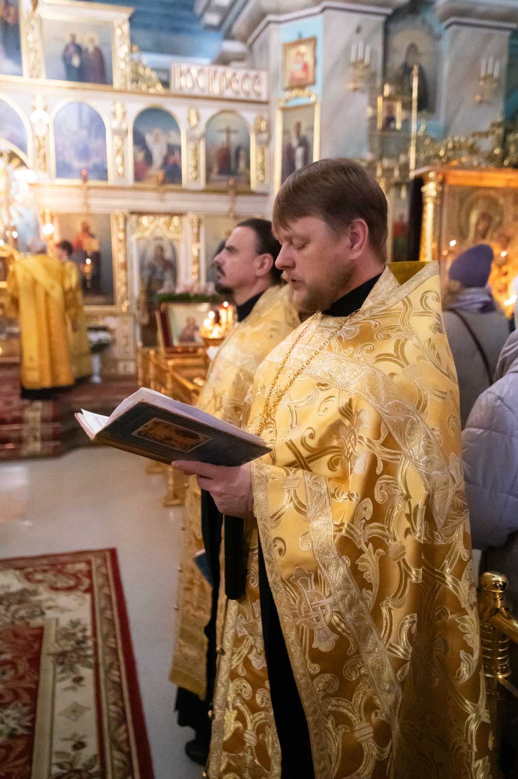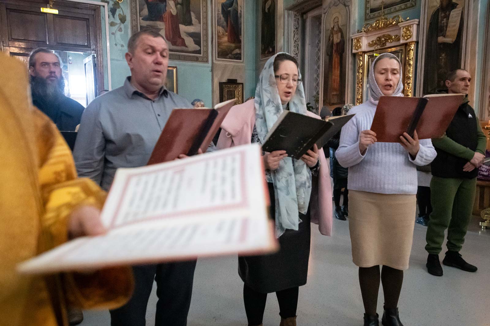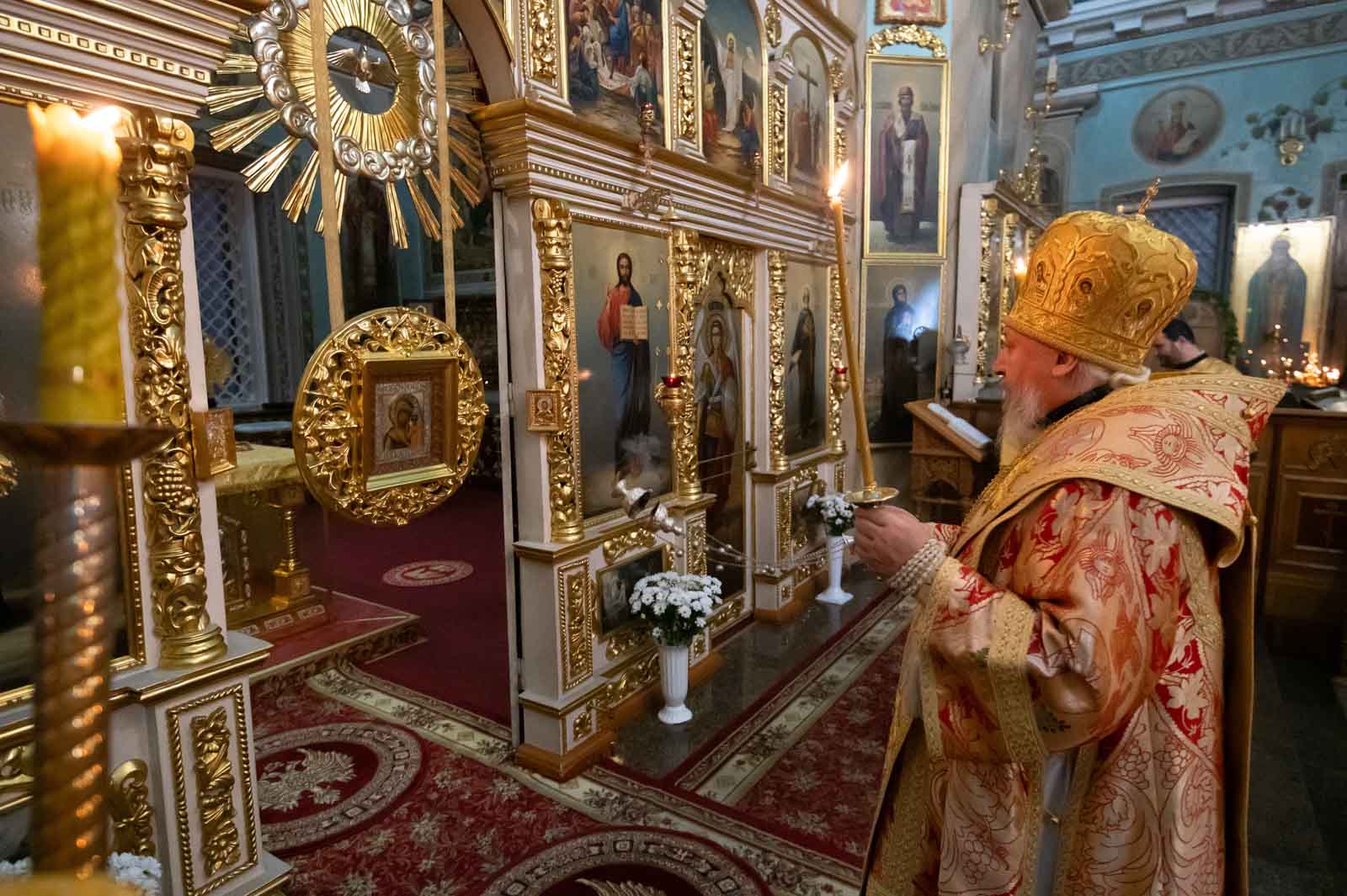 Его Высокопреосвященству сослужили секретарь Гомельской епархии протоиерей Георгий Алампиев и клирики кафедрального собора.