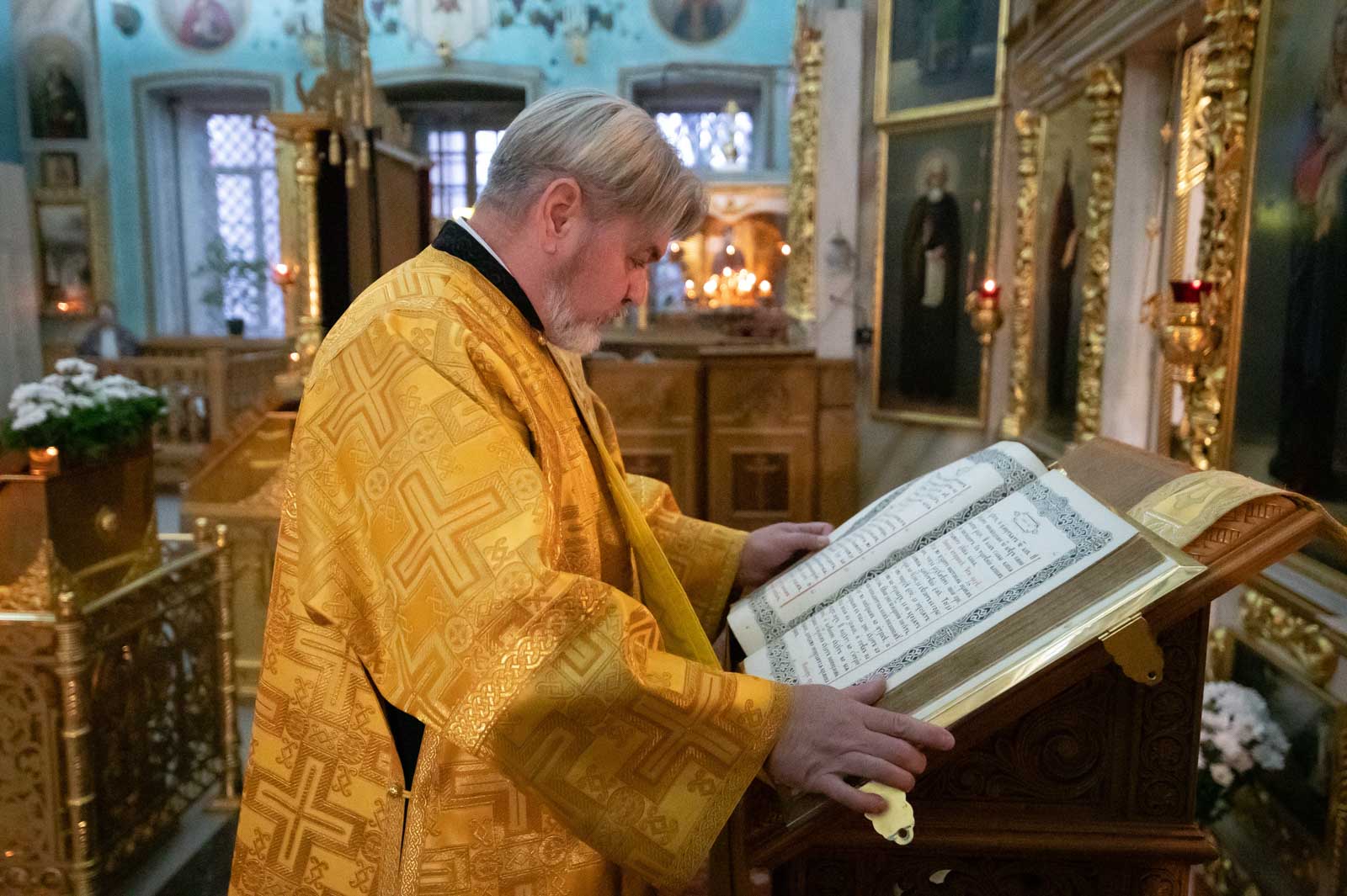 Божественную литургию 13 ноября 2025 года, в четверг 23-ой седмицы по Пятидесятнице, Высокопреосвященнейший Стефан, архиепископ Гомельской и Жлобинский, совершил в Петро-Павловском кафедральном соборе г.Гомеля.