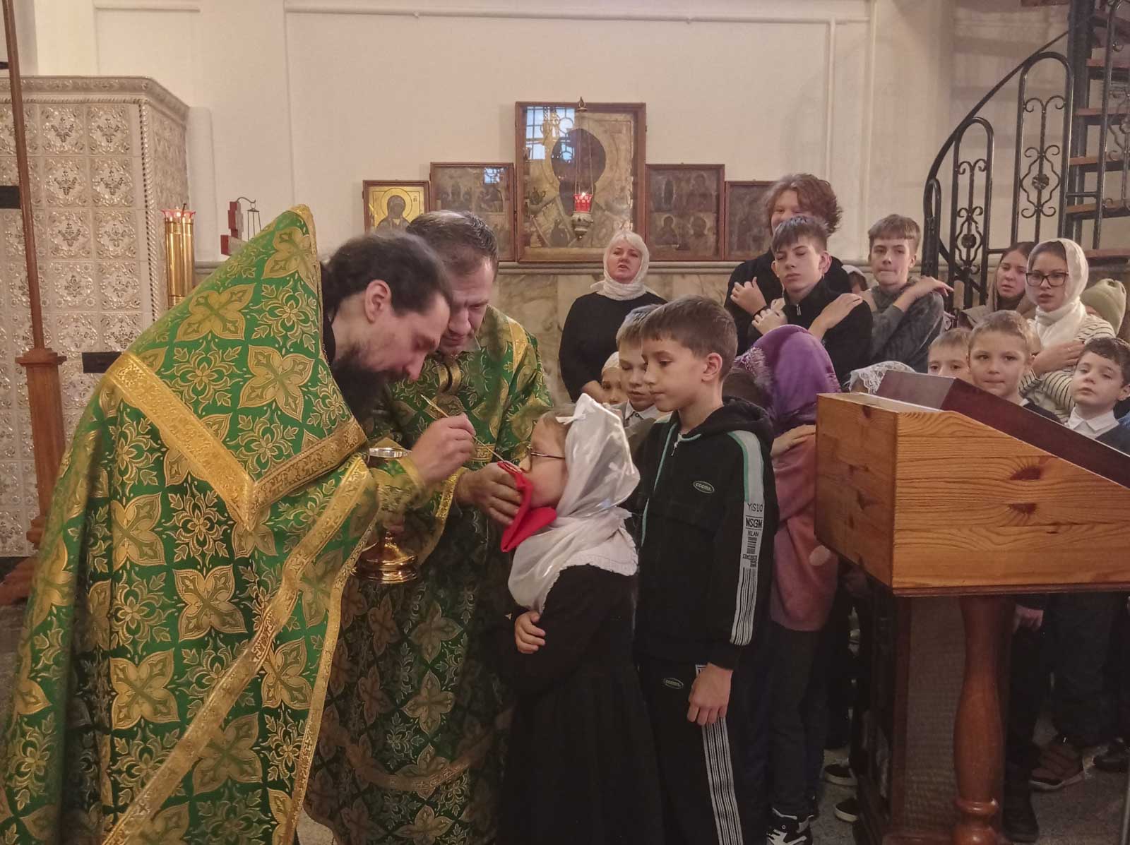 По инициативе учителя начальных классов СШ №8 Анны Николаевны Якубенко литургию посетили её ученики вместе с мамами и папами. Для многих эта служба стала первым глубоким и трогательным опытом участия в богослужении.