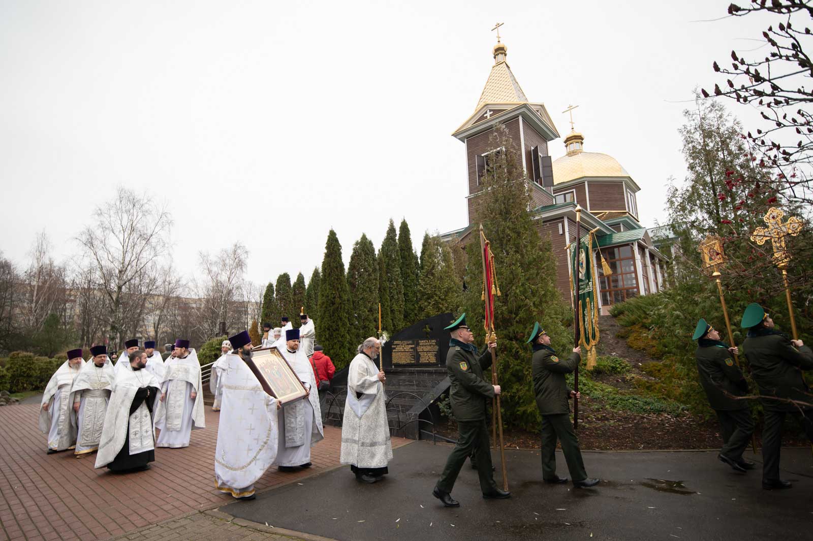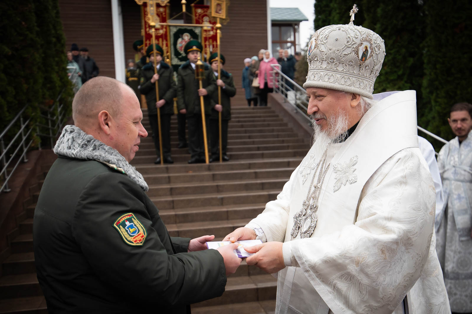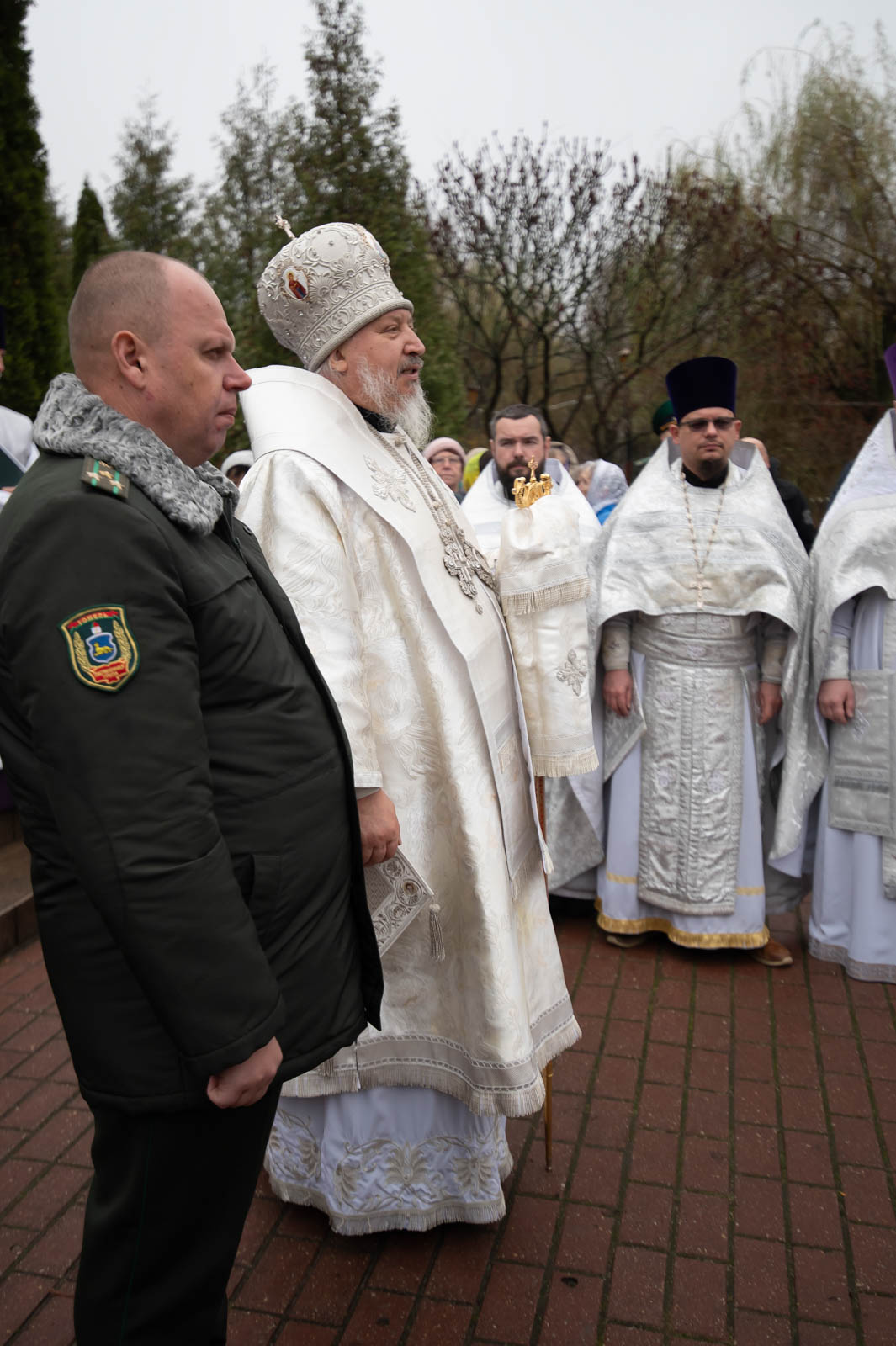 За богослужением молились начальник Гомельской пограничной группы полковник Винников Дмитрий Александрович и личный состав погрангруппы.