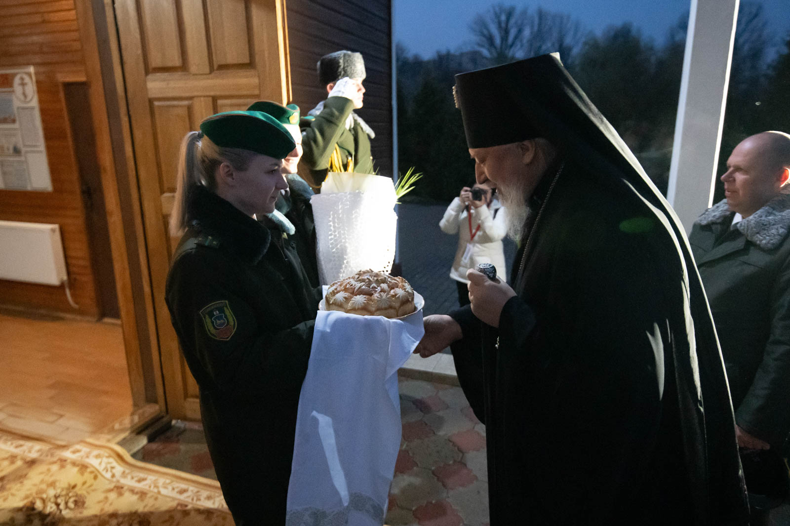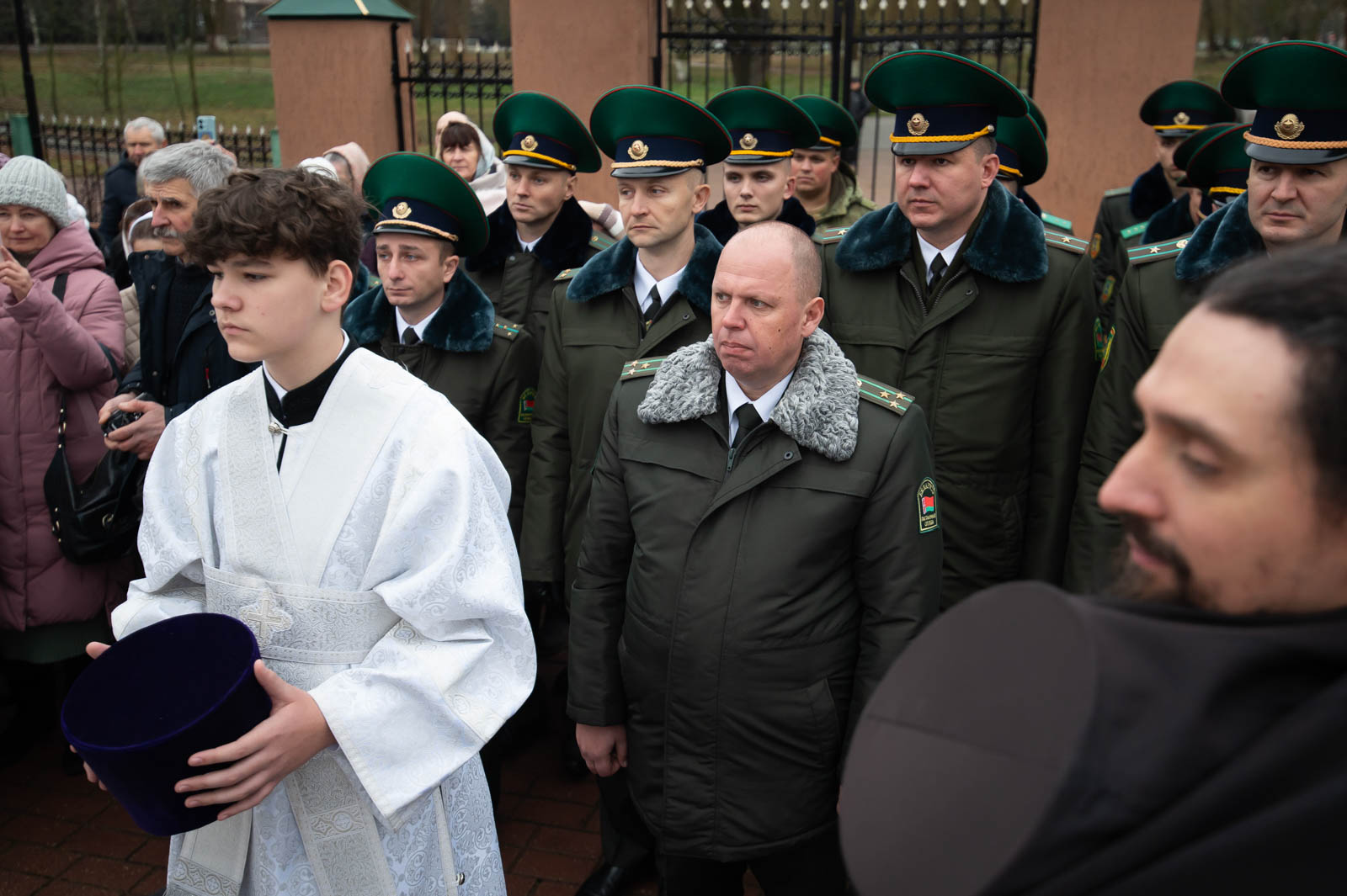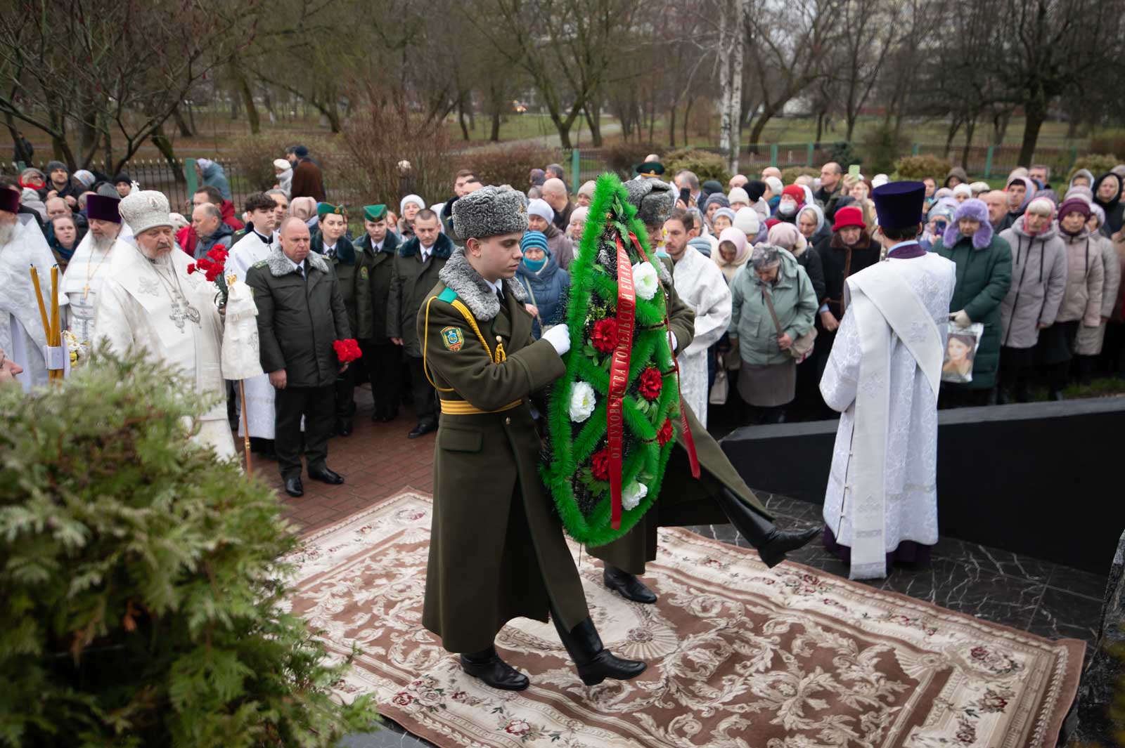 За богослужением молились начальник Гомельской пограничной группы полковник Винников Дмитрий Александрович и личный состав погрангруппы.