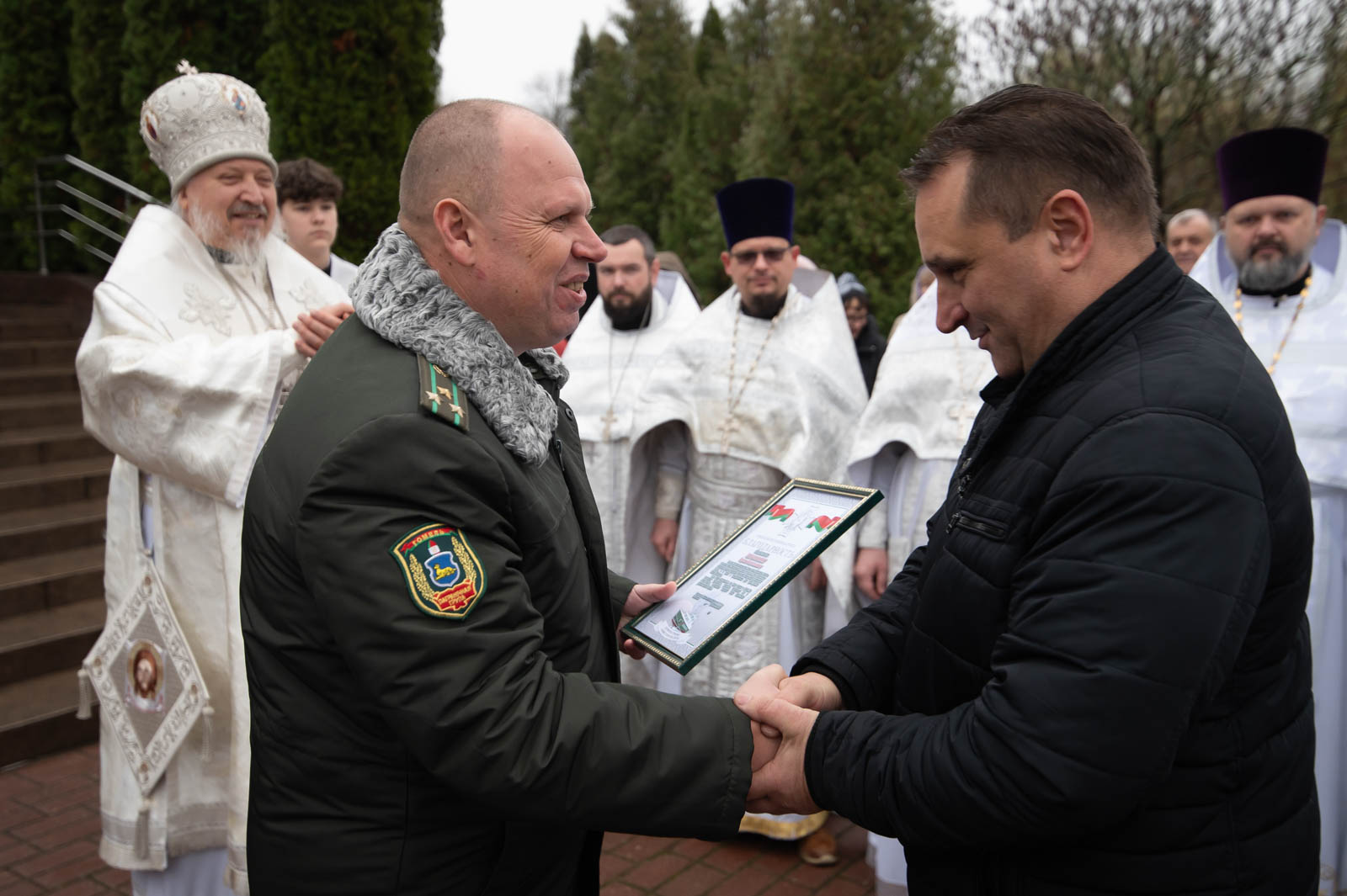 За значительный вклад в развитие сотрудничества между Гомельской пограничной группой и Гомельской епархией начальник группы полковник Дмитрий Александрович Винников был награждён медалью святого праведного Иоанна Кормянского III степени, а подполковник Алексей Игоревич Смагин удостоен архиерейской грамоты.
