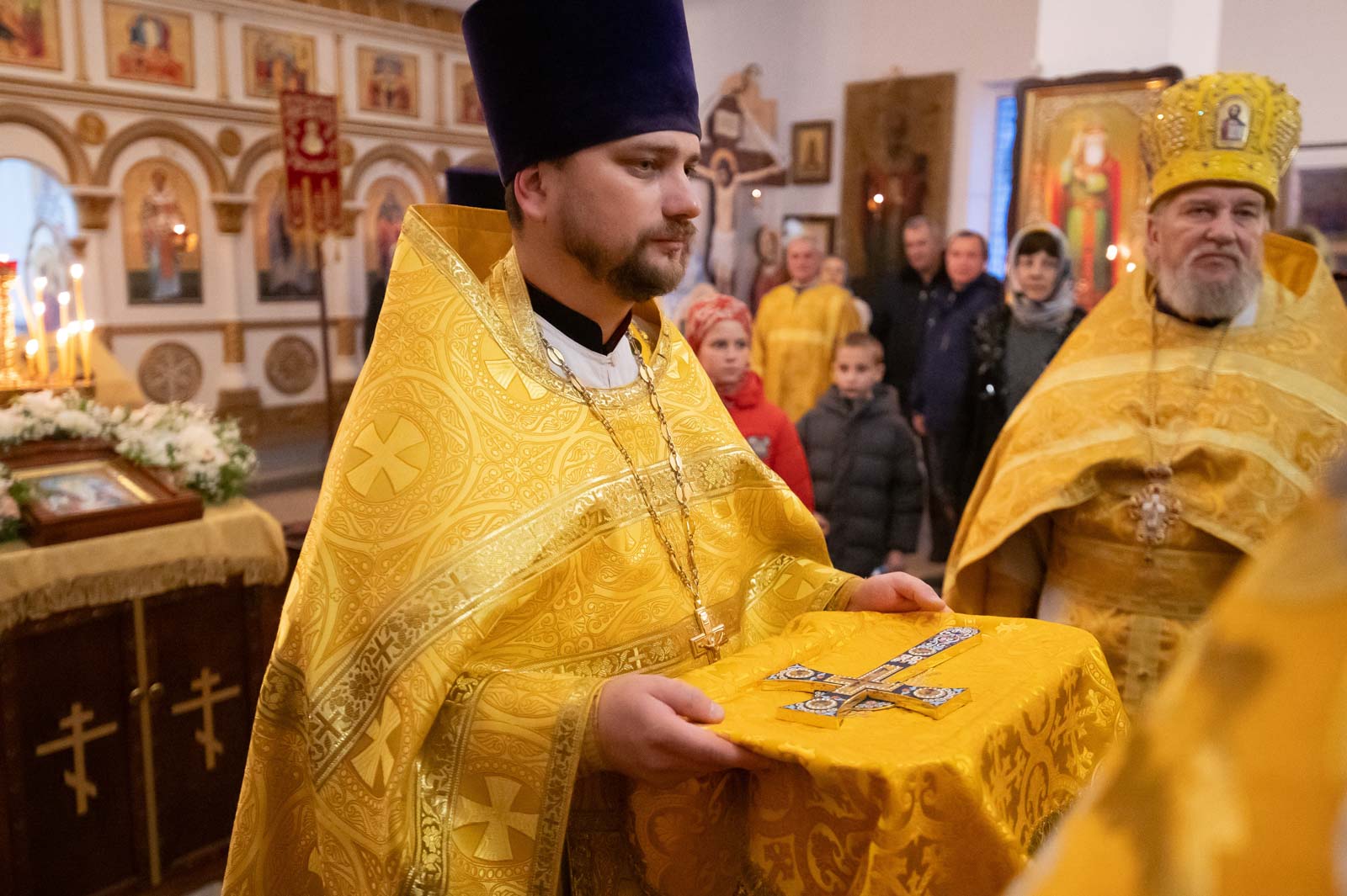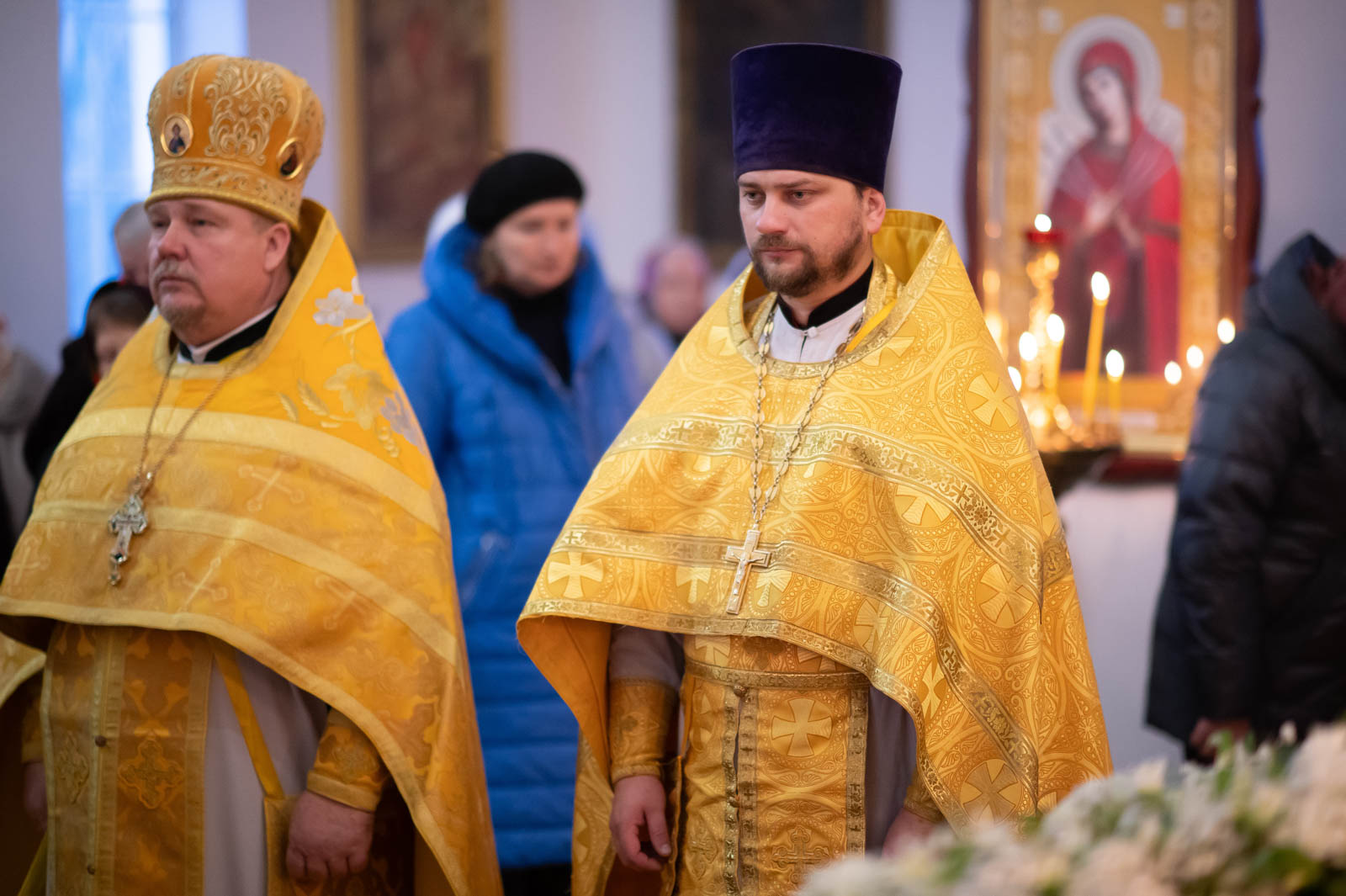 Его Высокопреосвященству сослужили: секретарь Гомельской епархии протоиерей Георгий Алампиев, благочинный Добрушского округа протоиерей Алексей Пилипенко, настоятель прихода иерей Максим Борисенок, духовенство благочиния и епархии.