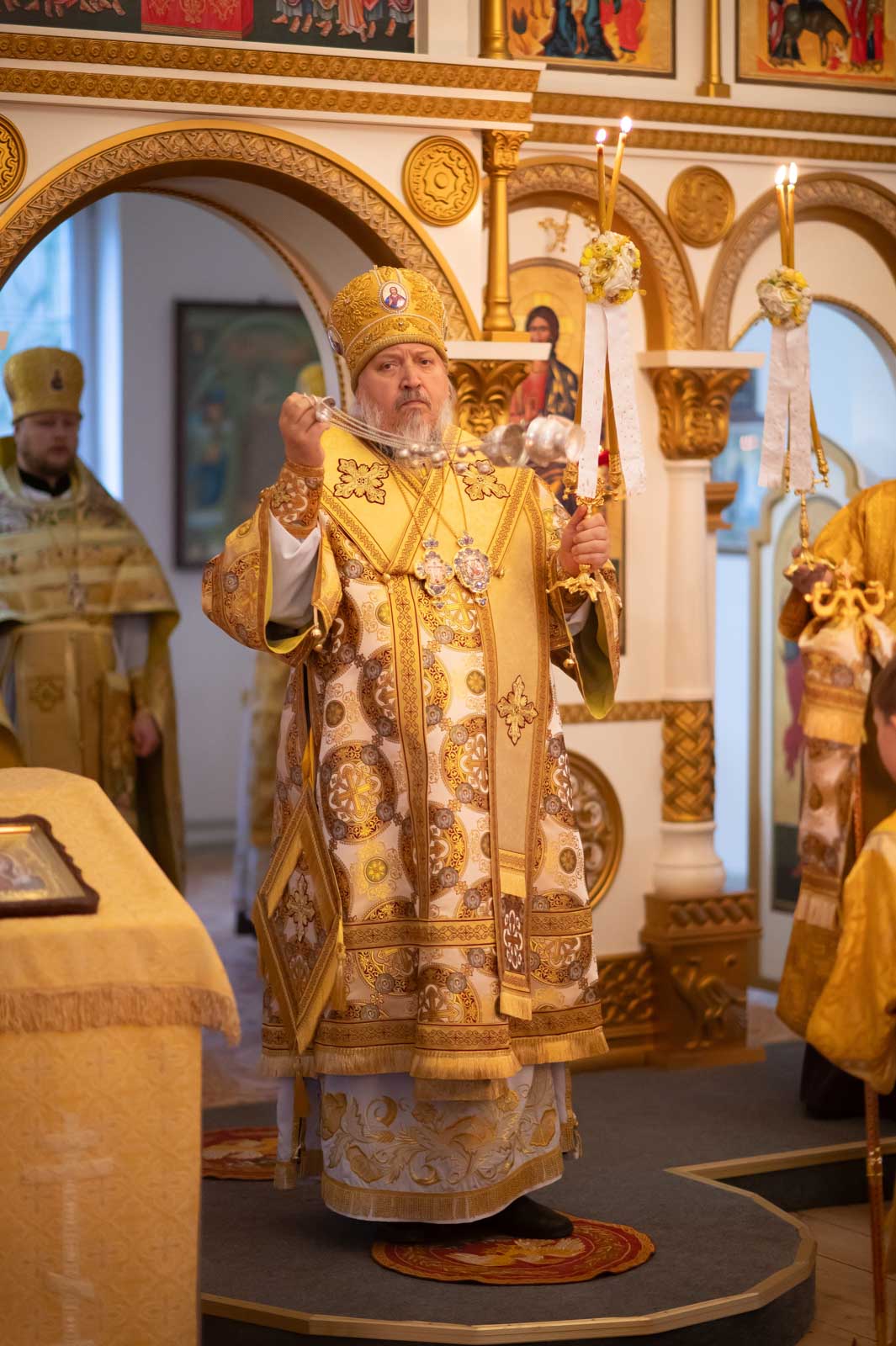 По окончании богослужения архиепископ Стефан обратился к молящимся со словами архипастырского назидания, поздравил причастников с принятием Святых Христовых Таин и преподал архипастырское благословение.