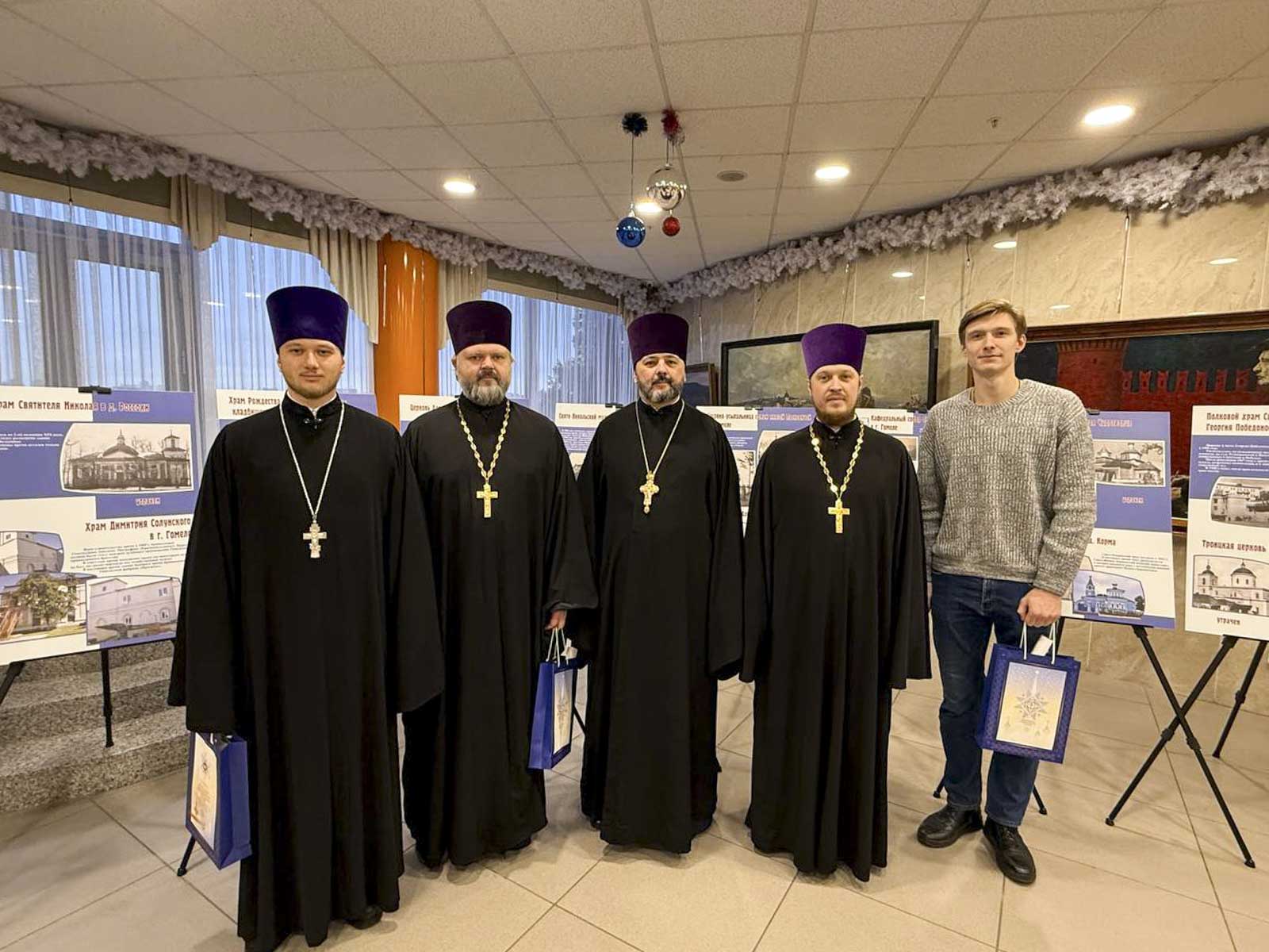 В фойе для участников чтений были организованы ряд экспозиций: выставка-панорама ГУО «Академия образования» «Белорусская батлейка как национальный символ и средство воспитания», выставки Отдела религиозного образования и катехизации Гомельской епархии «Потери и приобретения минувшего, образ будущего. Архивные фотографии утраченных храмов Гомельщины» и «За паству и Отечество: подвиг священнослужителей в годы Великой Отечественной войны». Также все желающие могли ознакомиться с представленными книгами издательств Белорусского Экзархата Московского Патриархата.
