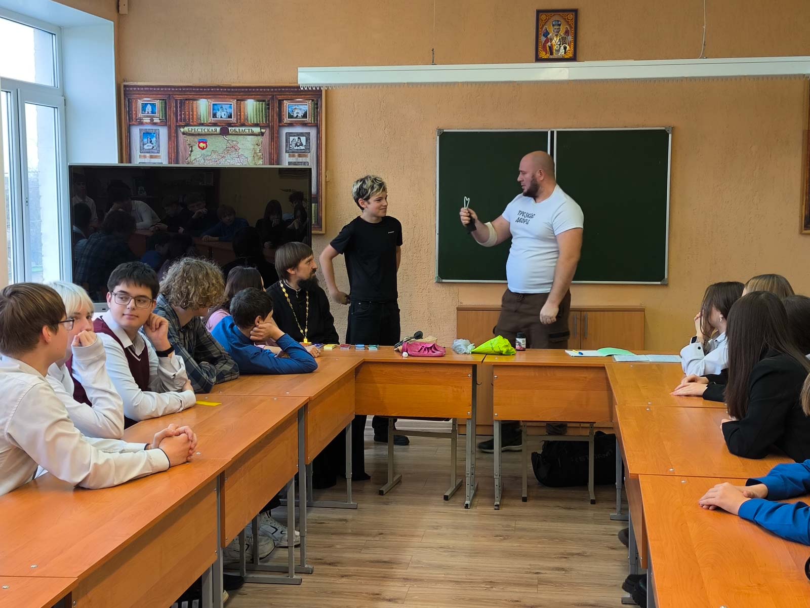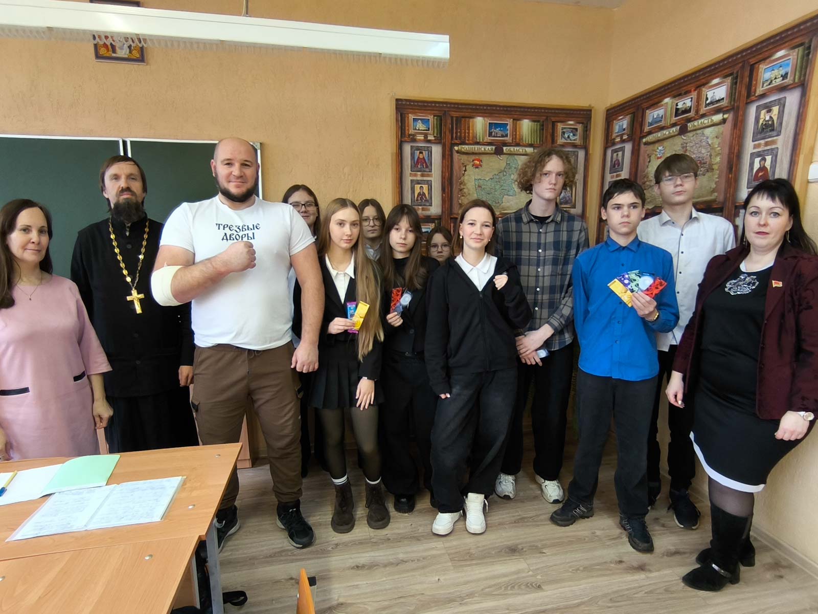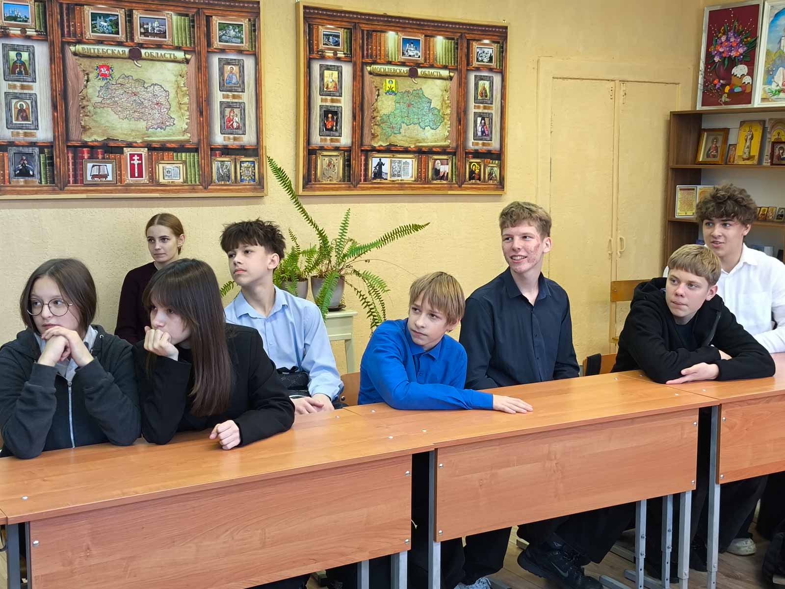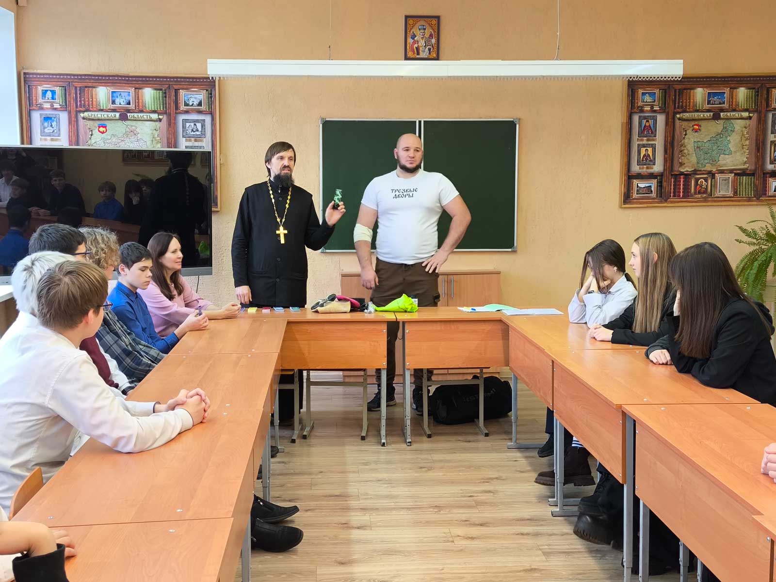 В рамках Покровских образовательных чтений «Просвещение и нравственность: формирование личности и вызовы времени» 28 ноября 2025 года в ГУО «Средняя школа № 41 г.Гомеля» состоялась встреча учащихся с иереем Александром Гришаненко, клириком прихода храма святого великомученика и целителя Пантелеимона в г.Гомеле, координатором отдела Гомельской епархии по работе с алкоголе- и наркозависимыми людьми, и представителем Белорусской федерации силового экстрима безэкипировочного пауэрлифтинга Александром Хвесюком.