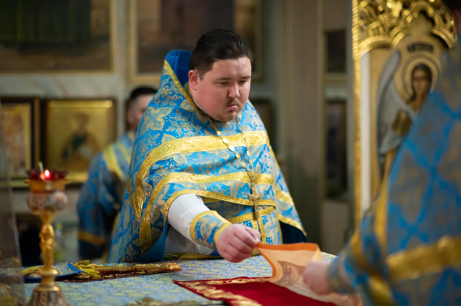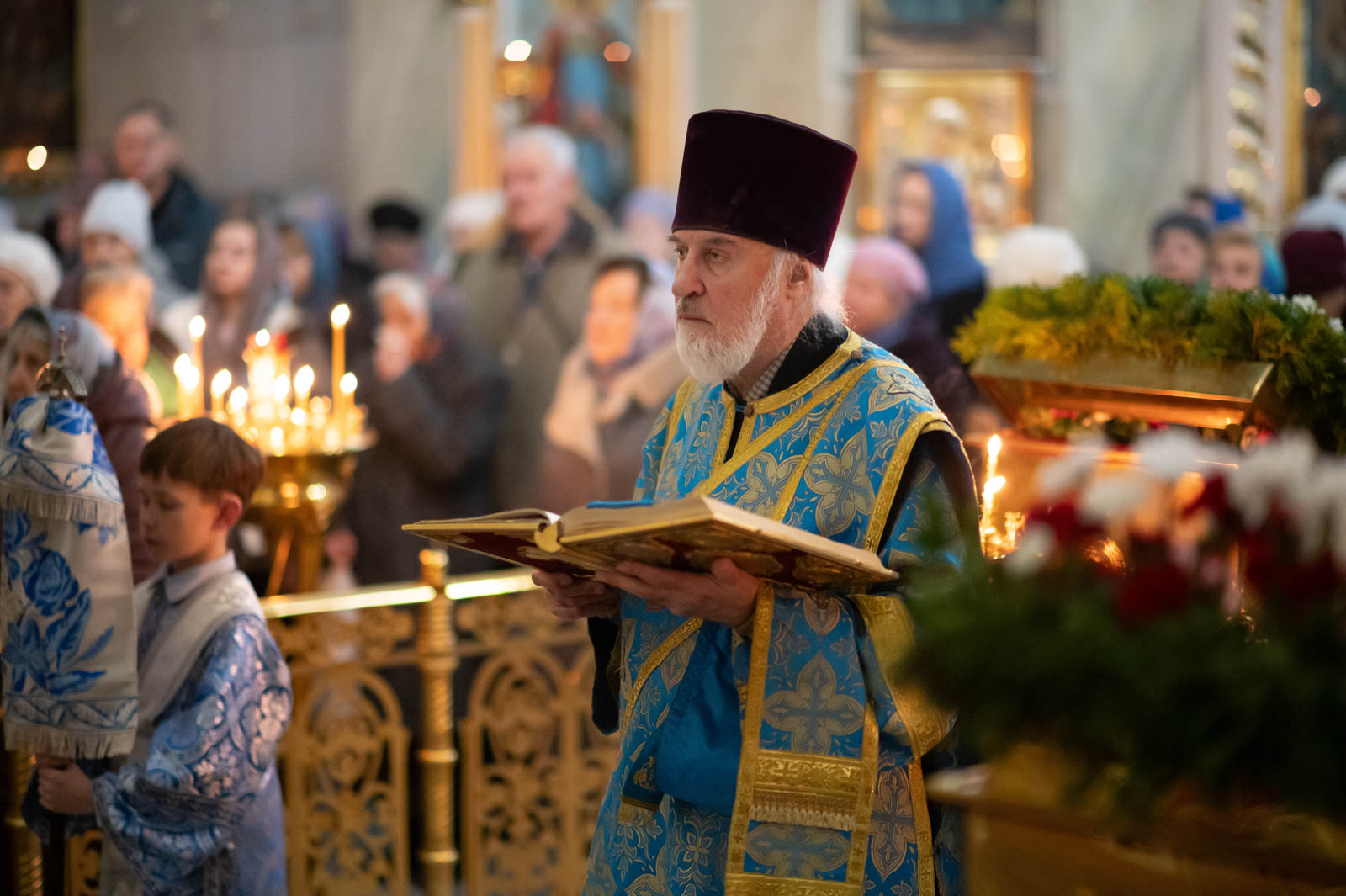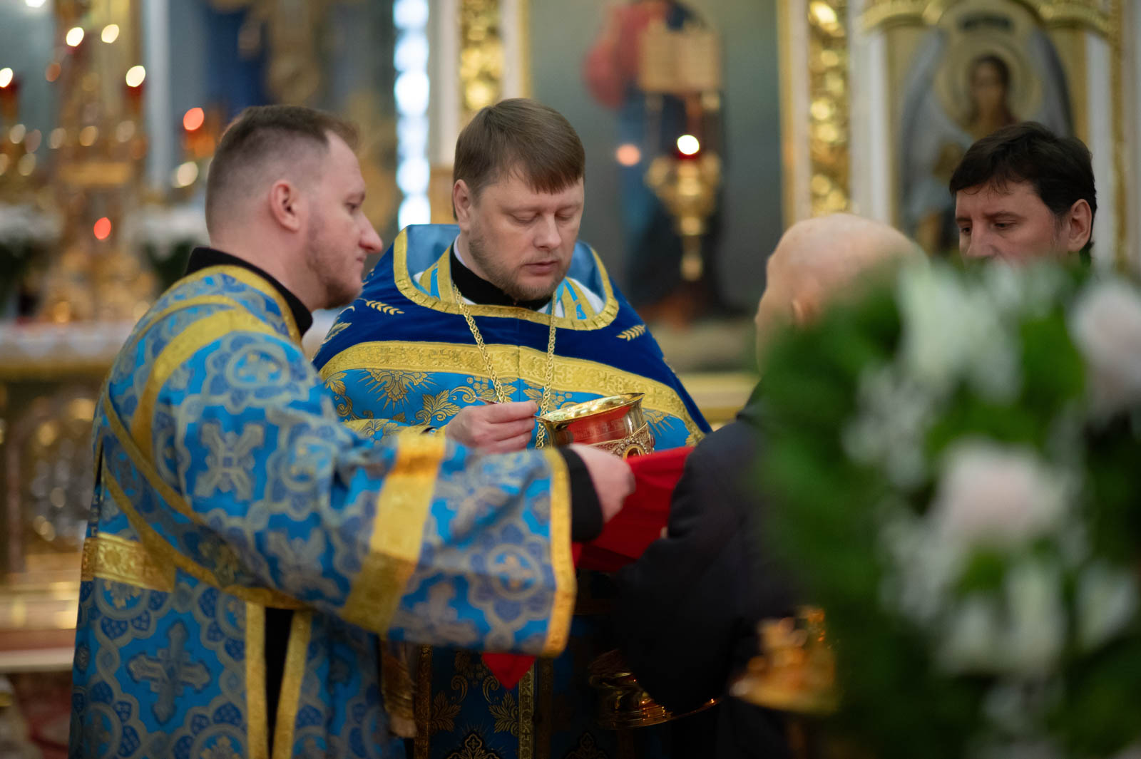 Его Высокопреосвященству сослужили секретарь Гомельской епархии протоиерей Георгий Алампиев и клирики кафедрального собора.