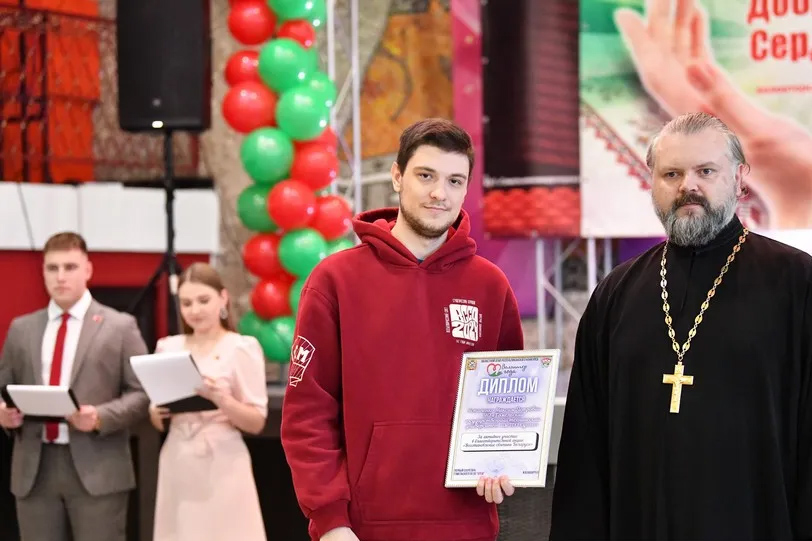 4 декабря 2025 года в кинотеатре имени М.И. Калинина прошел областной этап республиканского конкурса «Волонтер года – Доброе сердце». По благословению Высокопреосвященнейшего Стефана, архиепископа Гомельского и Жлобинского в мероприятии принял участие иерей Димитрий Мельников, председатель отдела по работе с молодежью.