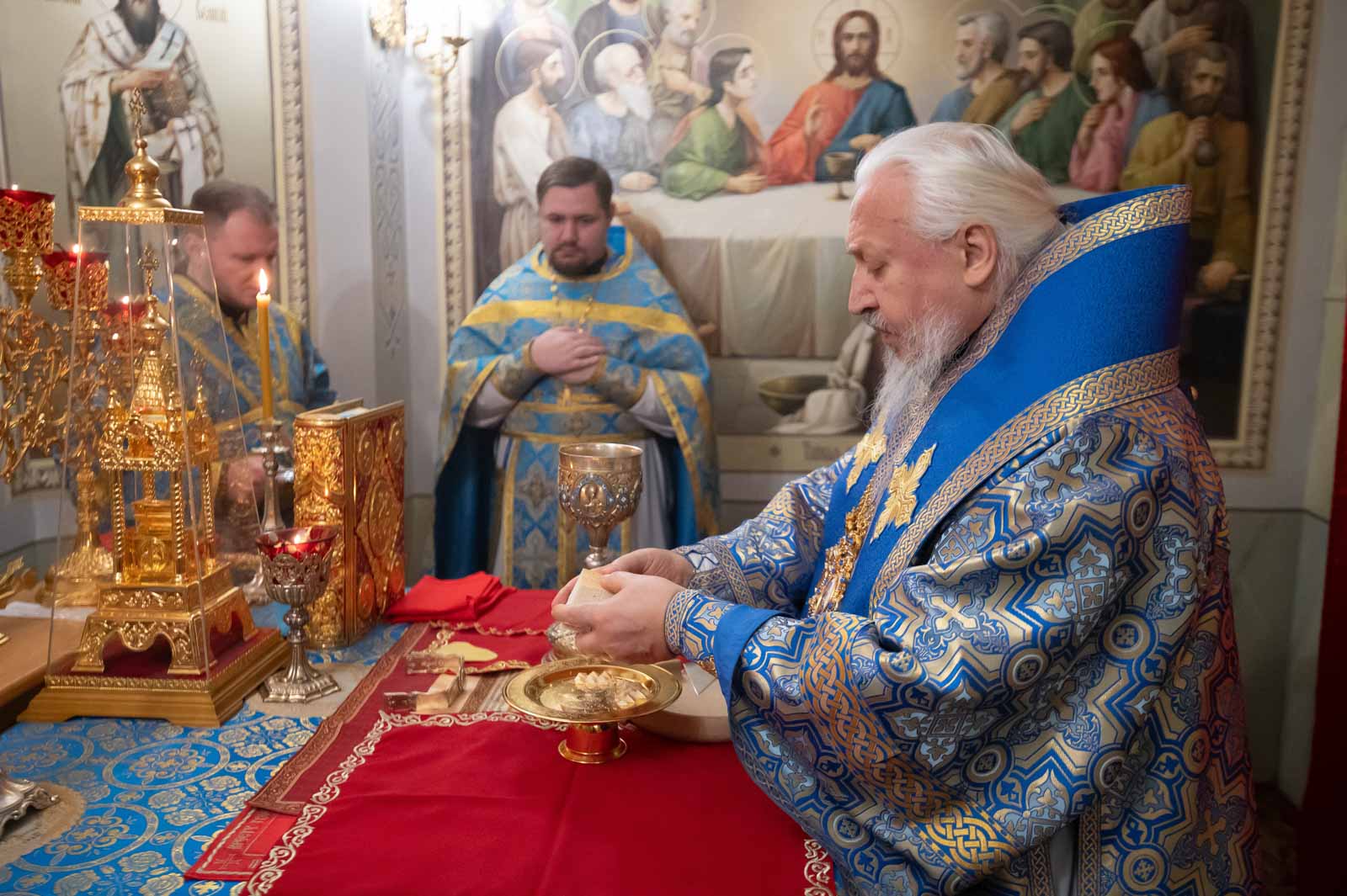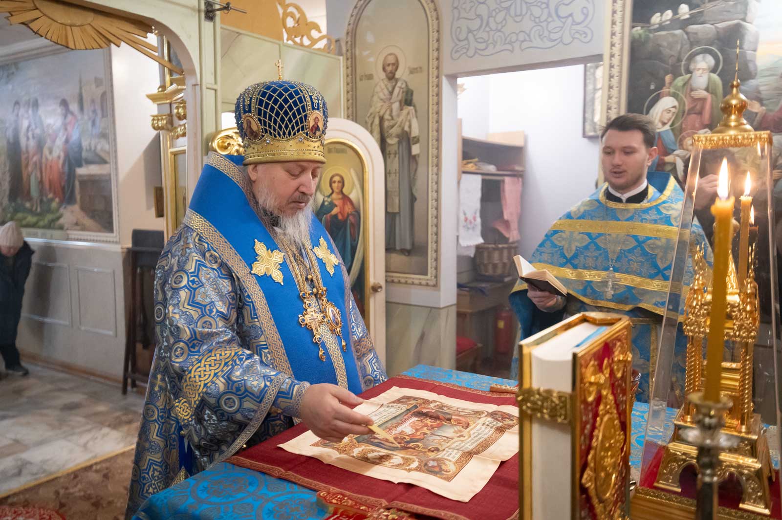 Божественную литургию 8 декабря 2025 года, в отдание праздника Введения во Храм Пресвятой Богородицы, Высокопреосвященнейший Стефан, архиепископ Гомельской и Жлобинский, совершил в криптовом храме кафедрального собора, освященном в честь святой равноапостольной Марии Магдалины.