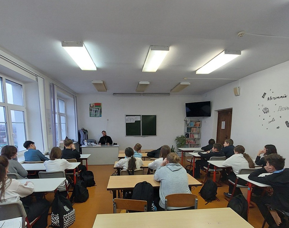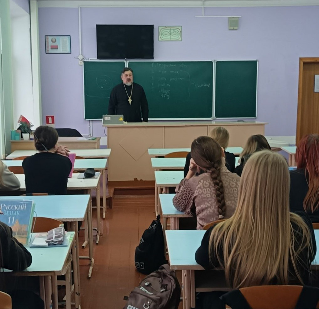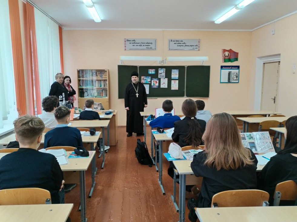 В местной школе аг. Довск с восьмиклассниками о нравственном образе жизни и целомудрии беседовал протоиерей Виталий Левчук, настоятель прихода храма Покрова Пресвятой Богородицы. Он говорил ребятам о том, как чистота нашей души дарует здравие телу.