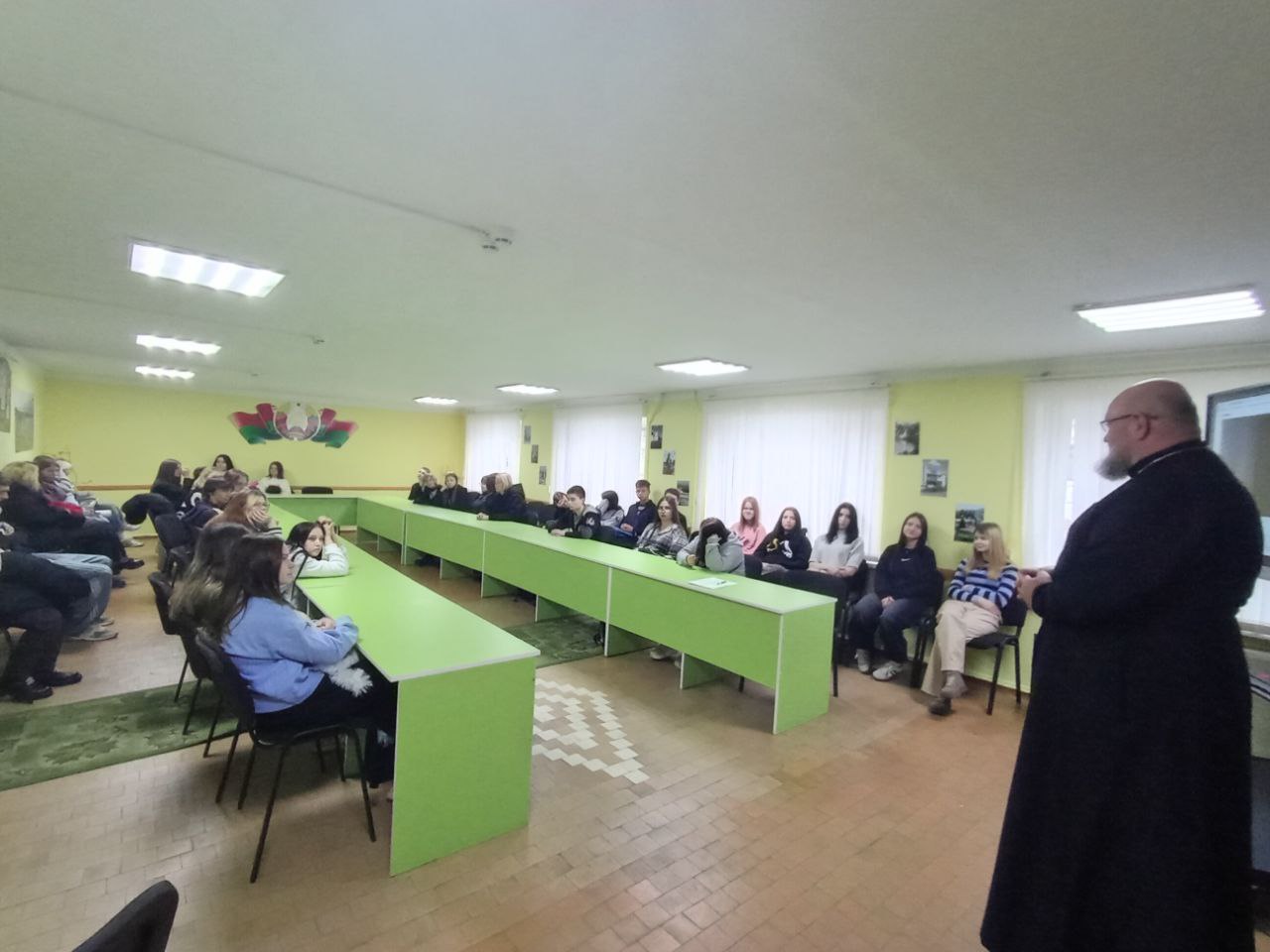В Речицком государственном техническом колледже прошла встреча клирика Свято-Успенского собора г. Речицы иерея Эдуарда Бондаря с учащимися групп П-11 и П-31. Темой встречи стали вопросы, которые волнуют многих молодых людей: ценность семьи, понимание любви и важность целомудрия.