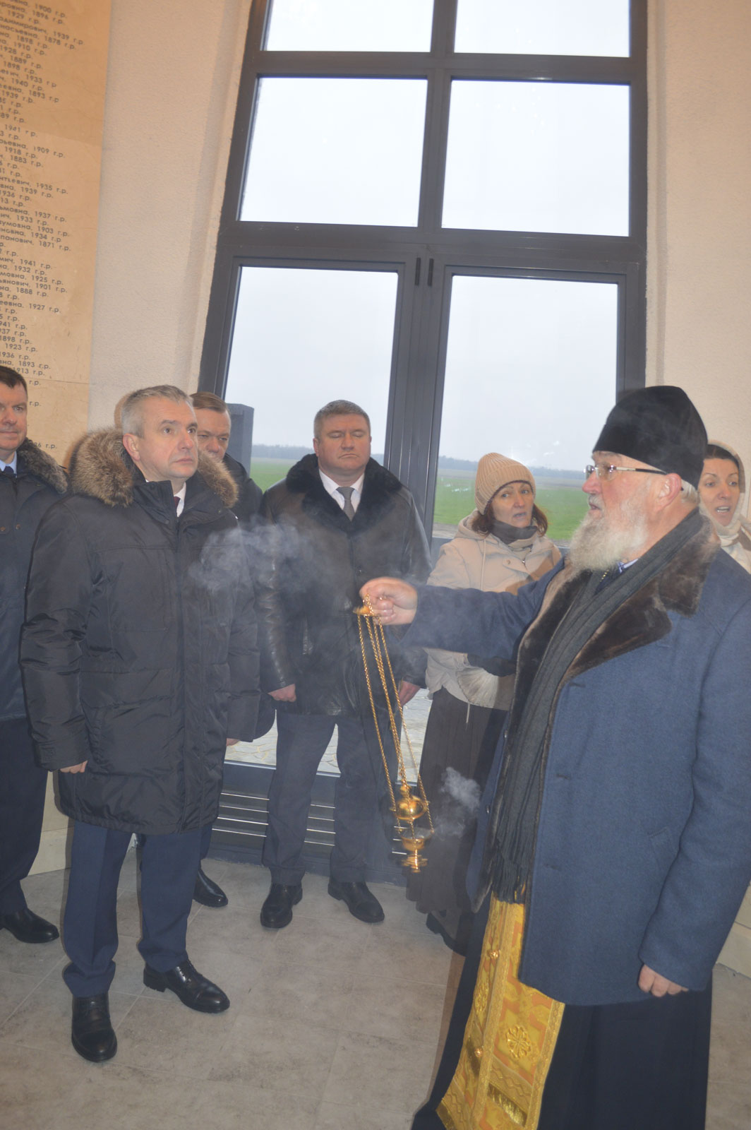 Благочинный Речицкого округа, настоятель Свято-Успенского собора в г. Речице протоиерей Алексей Пешко освятил часовню мемориала и совершил литию по погибшим жителям.