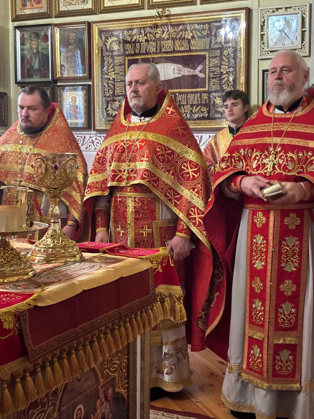 Его Высокопреподобию сослужили: благочинный Жлобинского округа протоиерей Алексей Смотрицкий, настоятель прихода протоиерей Михаил Борисенок, духовенство благочиния и епархии.