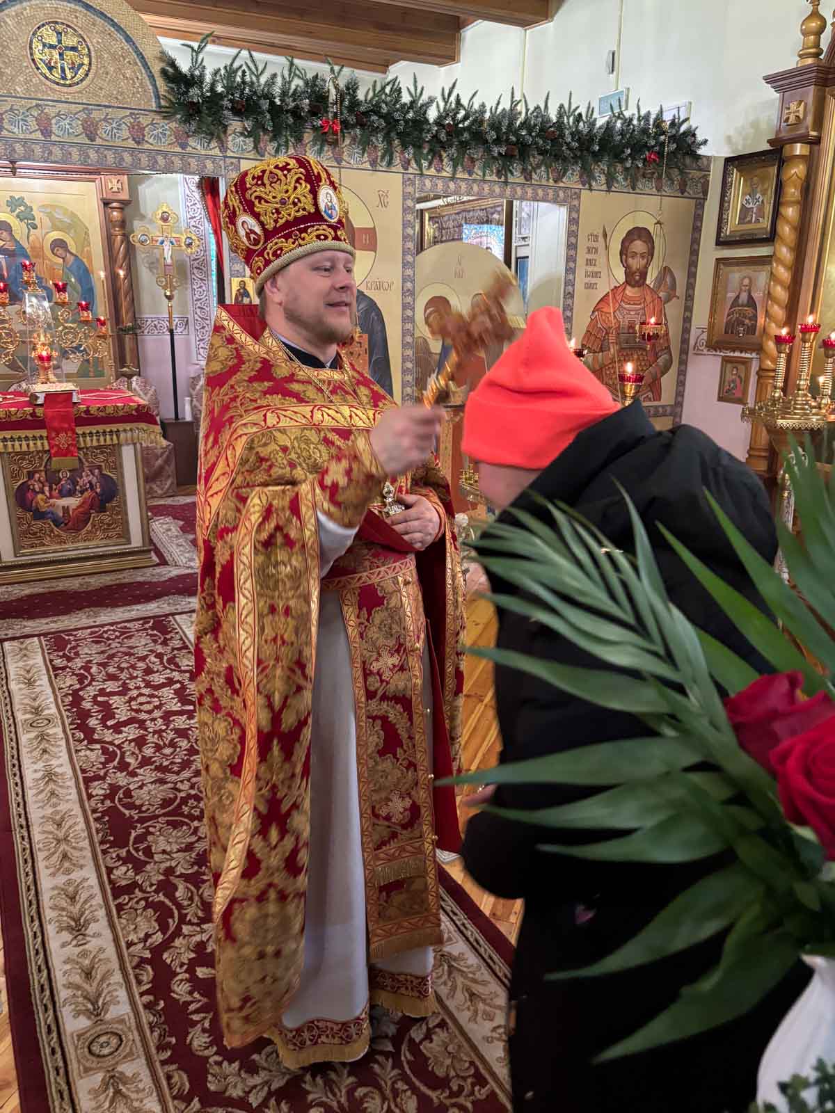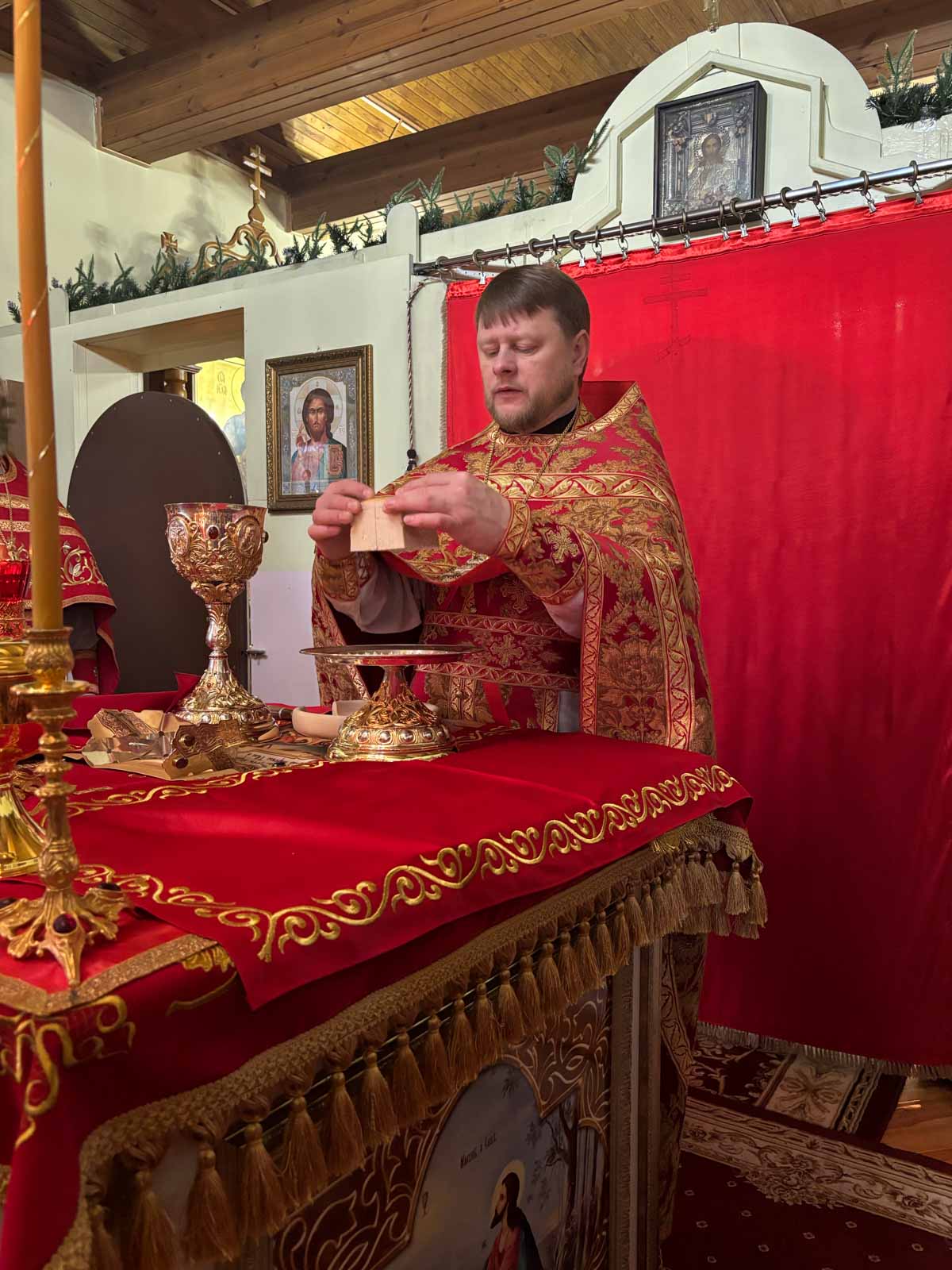 По завершении богослужения протоиерей Георгий поздравил прихожан и духовенство с праздником, а причастников с принятием Святых Христовых Таин.